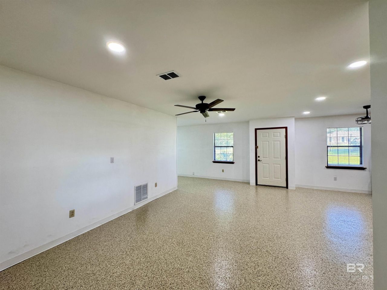 Great price in north Baldwin County in the Pinegrove community. 2 bedroom, 2 bath, with attached carport, sitting on 2 acres. Fresh interior paint, stainless appliance package (including mounted microwave and refrigerator) and industrial coated flooring (very durable and scratch resistant) throughout. Washer/dryer convey. Interior sliding barn doors, handicap accessible bathroom, smooth ceilings with recessed lighting. Outbuildings convey. Well maintained grounds include ginger lilies surrounding the cedar tree. Partially fenced. Home was previously a 3 bedroom: opened up to accommodate previous owner. Buyer to verify all information during due diligence.