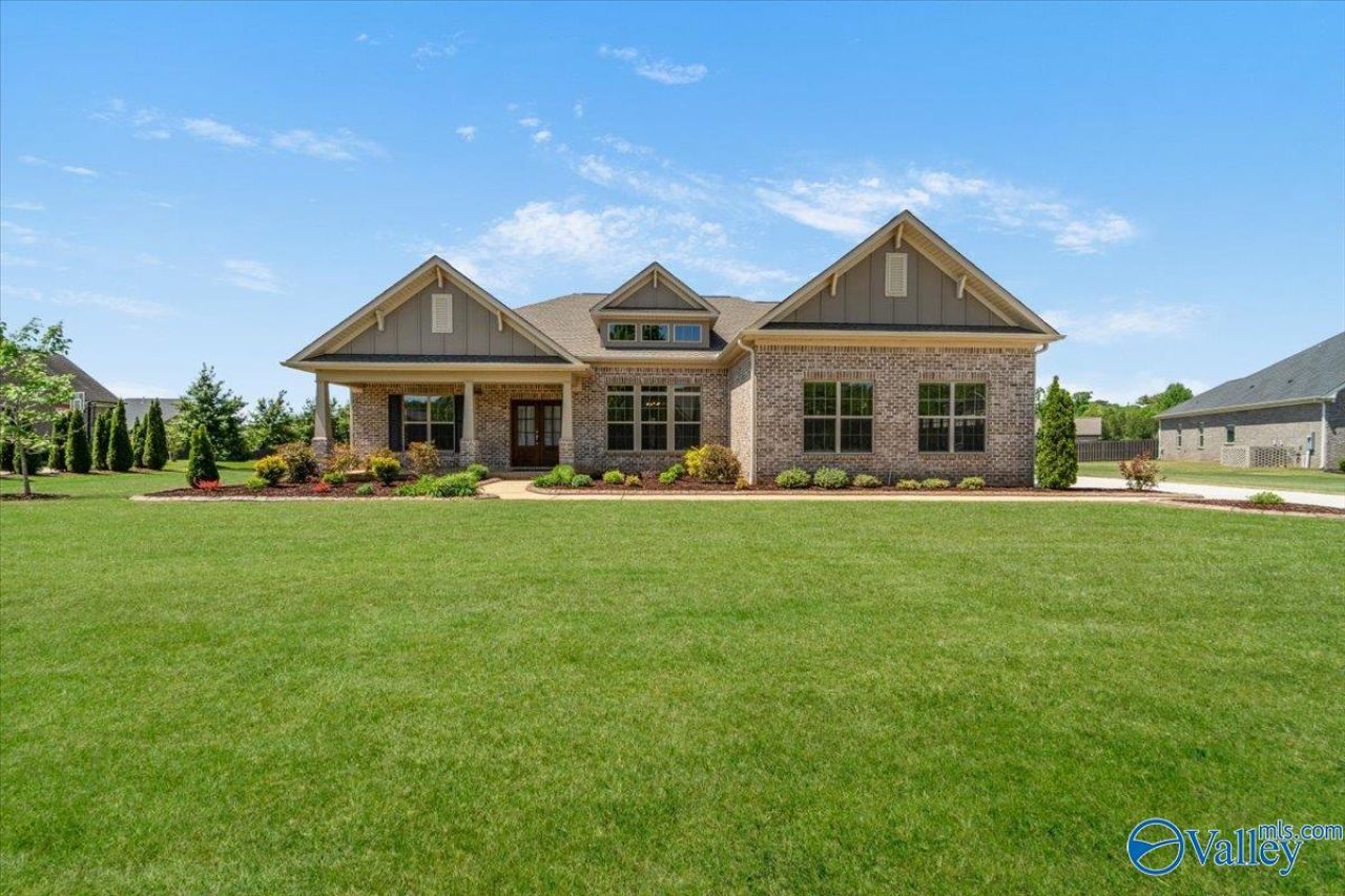 Experience space, comfort, and everyday ease in this beautifully designed home set on a large, flat lot in a truly convenient location. With 5 bedrooms on the main level, this layout is ideal for anyone who wants the convenience of single-level living or multi-generational. Offering an open-concept floor plan, a gas fireplace and flex to design the layout you want! The kitchen is built for both entertaining and daily life, featuring TWO oversized islands that offer abundant prep space, seating, and gathering room for family and friends. Step outside to the covered back patio and enjoy peaceful morning coffee or evening sunsets. Just minutes from Redstone Arsenal/Research Park-
