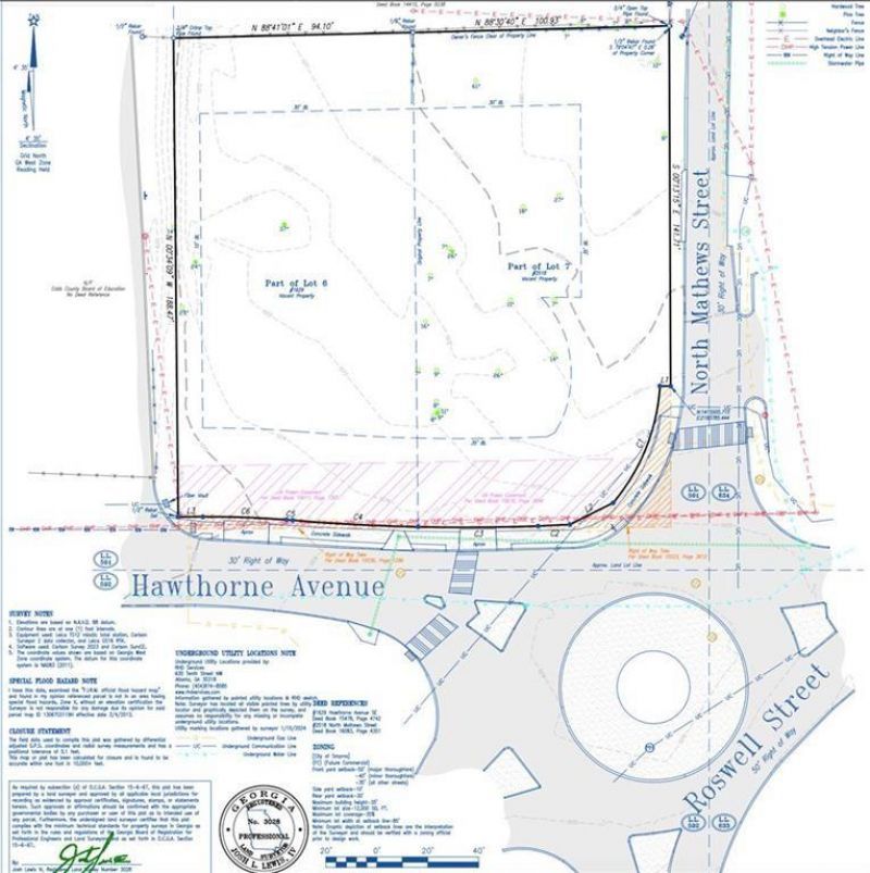 Sale includes both lots located on the booming corner of Hawthorne and N Mathews, totaling approximately ±0.85 acres and zoned FC, offering strong potential for commercial use or an easy rezoning path for residential or mixed-use development. The site is completely flat, with utilities already in place (including sewer), as it was previously home to two residences.With recent development directly across the street, including Ruby's Pizza and additional future restaurant concepts planned for the area, this corridor is positioned for continued growth and redevelopment. The nearby development at High Parc at Smyrna, along with home values in the Mathews Park area pushing toward the $1M range, further supports both commercial and residential upside.Whether pursuing a retail, restaurant, mixed-use, townhome, or new-build residential concept, this site offers excellent visibility, strong walkability, and long-term value in one of Smyrna's most active growth corridors.