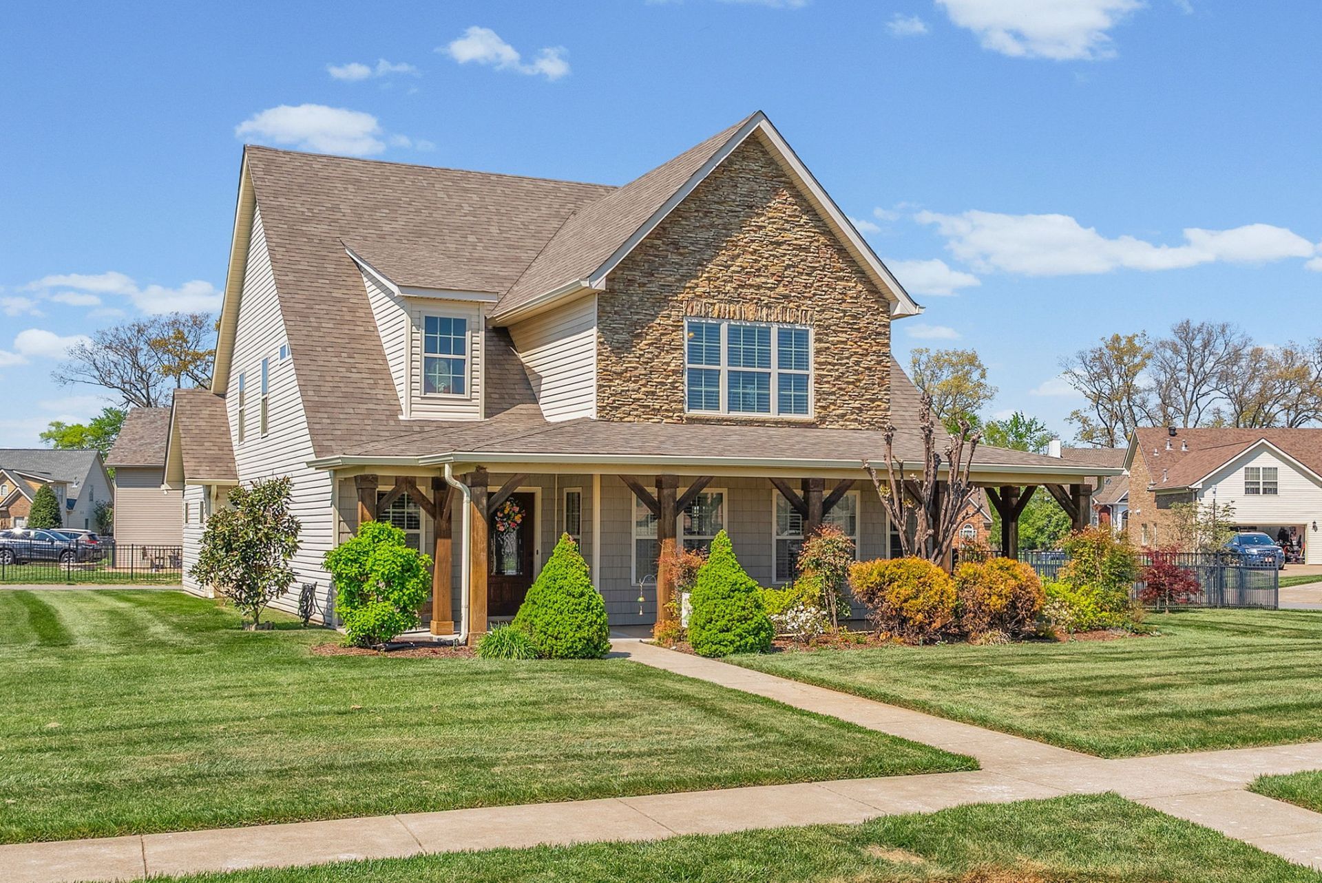 You won't want to miss this charming craftsmen home on a pristine corner lot in the wonderful Hickory Wild community, complete with a NEW ROOF, gutters, screens, and main HVAC unit! This home features 4 LARGE bedrooms with the Primary bedroom and laundry room on the MAIN LEVEL. Upstairs you will find 2 bedrooms with a connecting Jack'n'Jill bathroom suite, and a another large bedroom with tons of storage space upstairs. The main level has beautiful wood flooring, a cozy living room with a statement floor to ceiling stone gas long fireplace open to the living room, kitchen and dining areas. The kitchen is spacious featuring a kitchen island, granite counter tops, stainless steel appliances, an additional desk space and the butlers pantry of your dreams! The back yard is fenced in and you can enjoy the evenings relaxing on the covered patio and gardening in the custom raised garden beds. Make sure to check out the community AMENITIES which include a community POOL, fitness center, CLUBHOUSE, sidewalks, playground, 2 pavilions, and WEEKLY LAWN CARE - lawn mowing and maintenance!! All with no city taxes!! For more information, check out the VIRTUAL TOUR and website!