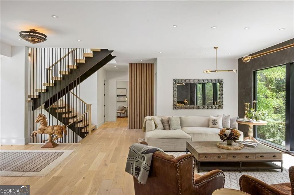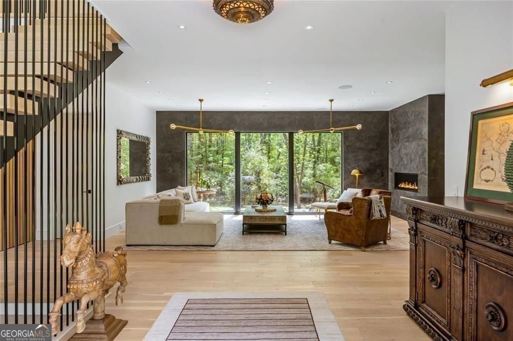 Experience a rare opportunity to own a newly constructed 2025 architectural showpiece on the coveted walking trails of Chastain Park. Designed by the acclaimed Harrison Design Associates, this refined modern residence delivers a seamless fusion of striking design and effortless livability-crafted for those who expect nothing less than exceptional. Bold architectural lines are softened by organic warmth, curated vintage touches, and dramatic yet inviting spaces that feel both elevated and livable. Every finish has been meticulously selected, from Venetian plaster walls, to statement stone surfaces by Walker Zanger, designer lighting by Regina Andrew, and a suite of top-tier appliances. A sculptural floating staircase and expansive steel-framed glass doors create unforgettable visual moments throughout. Perfectly scaled for modern living, the home features 5 spacious bedrooms, 5.5 luxurious baths, and a 4-car garage- upgrading with brand-new polyaspartic flooring. Multiple living and lounge spaces across all levels provide flexibility and privacy, including an upper retreat, a main-level bedroom with dedicated office, and a versatile bonus space currently designed as a private fitness studio complete with steam shower. At the heart of the home, a light-filled open-concept living, dining, and chef's kitchen unfolds with wide-plank light oak flooring and floor-to-ceiling stone detailing. A dramatic matte-black feature wall frames expansive sliding glass doors, dissolving the boundary between indoors and the lush, curated landscape beyond. The result is a home that feels like a private retreat-yet is designed for effortless entertaining. Thoughtful design continues in every detail: a stylish wet bar with wine refrigeration, sculptural brass lighting, and layered textures that balance sophistication with comfort. The striking entry sequence-anchored by a grid of black steel and glass-sets the tone for the home's cohesive architectural language, while the floating wood-and-metal staircase serves as a functional work of art. Step outside to experience a lifestyle that is simply unmatched. Surrounded by golf, tennis, equestrian facilities, and premier recreational amenities, you are also moments from one of Atlanta's most beloved outdoor concert venues, Chastain Park Amphitheater, as well as exceptional dining, including a walkable Michelin-recognized experience at The Chastain. Lightly lived in and impeccably maintained, this residence offers the rare combination of brand-new construction, inspired design, and immediate move-in luxury. Homes of this caliber-where architecture, location, and lifestyle align so effortlessly-are seldom available. This is more than a home. It is a statement.