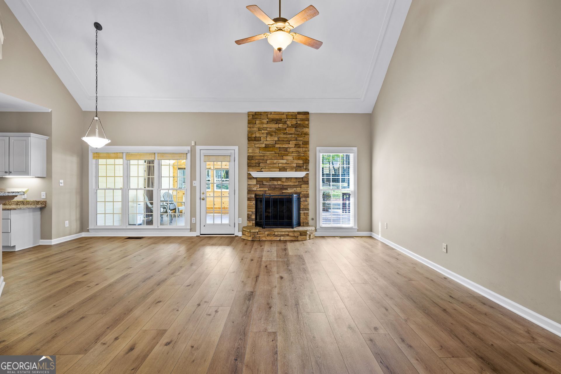 OPEN HOUSE, THURSDAY, APRIL 2 FROM 5-7PM. 4 bedrooms. 2.5 baths. 2,468 sq ft. Full acre. Brand new roof. Brand new LVP flooring throughout the main level. New upstairs HVAC. Encapsulated crawl space. Pre-listing inspection complete, all repairs done. $500,000. Welcome to 170 Brennan Drive, a Victorian-style home with a stacked stone porch and a striking turret-style bay window, sitting on a full acre in Pendleton, one of Tyrone Georgia's most sought-after neighborhoods. Tyrone is 30 minutes from Atlanta and 20 minutes from Hartsfield-Jackson International Airport, consistently ranking among Georgia's safest cities and best suburbs to raise a family. Pendleton offers exceptional amenities including Lake Pendleton with a gazebo, pool, tennis and pickleball courts, and a clubhouse. Inside, the grand two-story foyer opens to formal living and dining rooms with built-in shelves, a kitchen that flows into the family room and sunroom, and a primary suite on the main level with a spa bath and walk-in closet. Upstairs, three spacious bedrooms, a full bath, a catwalk overlooking the foyer, and a huge walk-in attic with floored storage. Fenced backyard, recently stained deck, and covered patio. Zoned for award-winning Fayette County schools including Sandy Creek High School, the only school in the county with an International Baccalaureate diploma program.