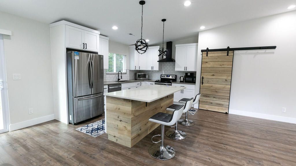 Welcome to 1700 Forest Ridge Circle, a rare find in Cleveland on a DOUBLE LOT offering incredible potential for future lot division, expansion, or added privacy.This spacious, charming modern farmhouse was nearly fully rebuilt in 2020, including 80% of the framing, electrical, plumbing, HVAC, garage door and motor, and more, giving peace of mind for many years to come. The renovation was thoughtfully designed and is now move-in ready with all appliances, washer and dryer, and sectional included.As you step inside, you will be greeted by a welcoming, bright foyer leading into the vaulted living space. You will find upgraded finishes throughout, including durable waterproof LVP flooring that flows through the main living areas and stylish tile flooring in the bathrooms.The kitchen is a standout with beautiful quartz countertops, tile backsplash, generous cabinetry and oversized island, with a large walk-in pantry tucked behind a charming barn door.The large primary suite feels like a retreat with dual vanities, quartz counters, patterned tile flooring, and an oversized walk in closet. Down the hall are 3 additional bedrooms and a full bath.One of the most impressive features is the oversized 900+ sqft 4 car garage which is perfect for a workshop, boat storage, extra vehicles, or all your toys. If parking or storage is important, this home has it covered. The circular driveway surrounds the property, offering convenience for guests, RVs, or multiple drivers.This home is also ideally located in the most prime Cleveland location, with quick access to I-75, APD 40, and major connecting roads/highways. Nearby amenities include shopping centers, grocery stores, restaurants, hospitals, and schools, all within minutes of the property.If you are looking for a beautifully finished home with space, flexibility, and land options, this one is truly worth seeing. Schedule your private showing today and experience everything this unique property offers.