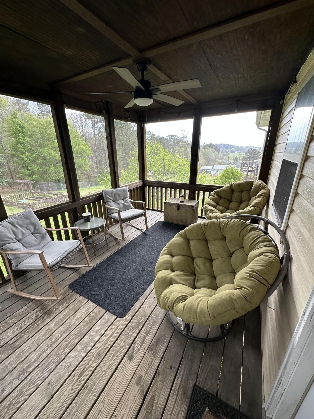 Welcome home to this charming and thoughtfully designed 3-bedroom, 2-bath residence that blends comfort, character, and everyday functionality. Step inside to find beautiful hardwood floors that flow throughout the main living spaces, adding warmth and timeless appeal. The layout offers both openness and privacy, with a spacious primary suite featuring its own private bathroom--your perfect retreat at the end of the day. Enjoy morning coffee or evening conversations on the inviting front porch, perfectly suited for rocking chairs and quiet moments. Out back, a screened-in porch provides a relaxing, bug-free space to unwind or entertain year-round. The home sits on a generously sized, fully fenced yard--ideal for pets, play, gardening, or hosting gatherings. With plenty of room to spread out both inside and out, this property offers the best of comfort and outdoor living.Whether you're looking for a peaceful place to relax or a welcoming space to entertain, this home truly has it all.