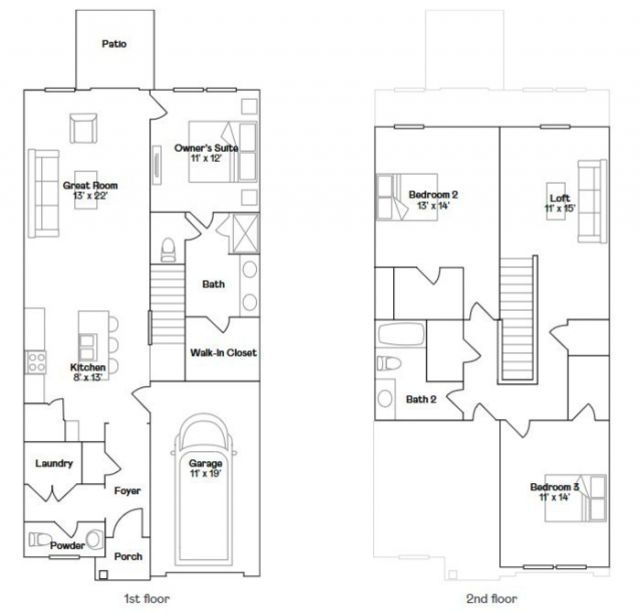 The first level of this two-story townhome is host to a generous open floorplan, shared between the Great Room, kitchen and dining room, while the luxurious owner's suite is accessed at the back. A loft and two more bedrooms occupy the second floor. *Images from a furnished model of this home. Actual configuration and features may vary.