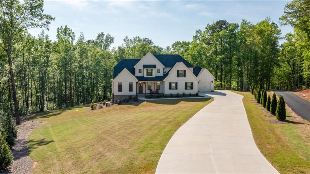Welcome Home to this stunning modern Farmhouse, featuring the Frank Betz Kensley Downs Plan. Located in Georgia's #2 School District in the State, second only to Buford City Schools and perfectly set on nearly 9 acres of private land at the end of a cul-de-sac with NO HOA, you have the convenience of everything Athens has to offer including our beloved Georgia Bulldogs, close proximity to the highway and the privacy of living in the country! This beauty features a brick paved front porch with beautiful carriage lights and a custom solid wood front door. There's also a quaint, tucked away side entrance between the garages, perfect for unloading into the mud room and kitchen. From the front door you'll love the quiet private dining room with coffered ceiling just off the kitchen. The heart of the home features an open floor plan with 2 fireplaces, one in the great room and one in the keeping room off the kitchen, a breakfast area with an amazing wooded view, and a gorgeous custom kitchen with an oversized island, double ovens, a new refrigerator, custom vent hood and finally, a newly installed custom, walk in pantry off the mud room, a laundry room and a door leading to the unbelievable covered and uncovered back deck, perfect for a large gathering or just enjoying the sunset and grilling out. The master suite is tucked away behind the great room with french doors leading to a private deck, and a spa bath with an oversized shower, soaking tub, and a custom closet with ALL the bells and whistles! Upstairs you'll find three additional bedrooms, one full bath and one jack and jill bath with separate sinks and a shared shower, and walk in closets! The full finished basement has a guest bedroom and bath, a sitting room, a main room with another fireplace and loads of room for a pool table, unfinished storage galore and open to the back yard! There are so many wonderful areas to explore in this home, it's impossible to capture in words. You'll just have to come see for yourself. From the beautiful finishes, including all oak hardwood floors on the main, the brick on the fireplaces, the custom pantry and primary closet, security everywhere, custom finish on the garage floors that's virtually indestructable, custom lighting, whole house blinds and more, you'll fall in love with this peaceful setting and the charming feel of a beautifully built home. We can't wait for you to see this one!