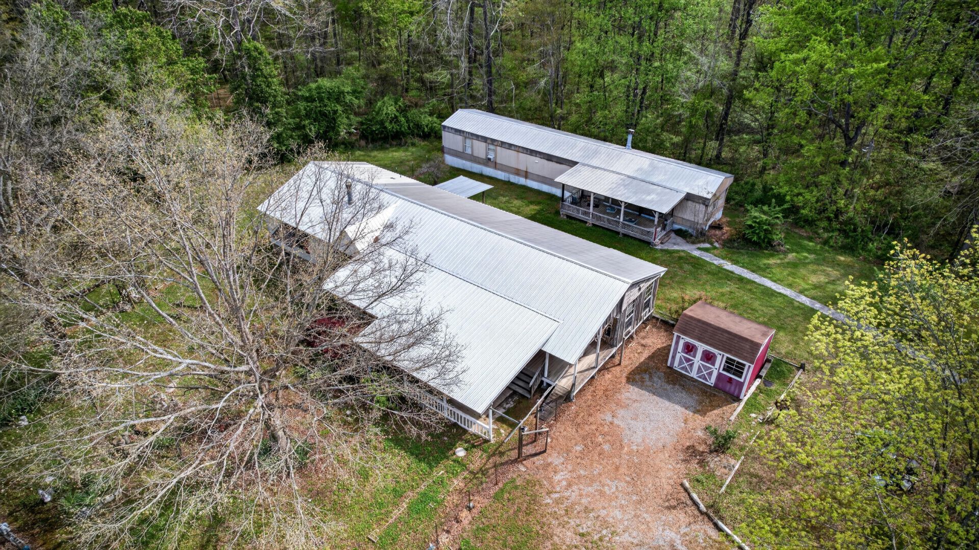 Manufactured home on permanent foundation situated on 5 scenic acres, offering privacy and room to roam. The property features a peaceful koi pond at the front and a natural dry creek bed running along the back, adding character and charm to the land. A single wide currently used for storage provides added flexibility with potential for resale or repurposing. Small storage shed also included for tools or equipment. Ideal for those seeking country living with space for outdoor activities, hobbies, or future expansion.