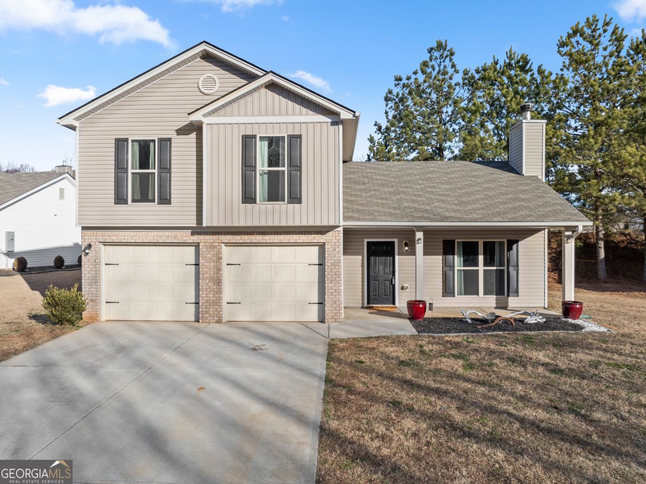 MOTIVATED SELLER! MAKE OFFER TODAY! Welcome to this beautifully maintained 4-bedroom, 3-bath traditional home located in the quiet Waterford Glen community of Lula. Built in 2021, this move-in ready residence offers thoughtfully designed living space on a level, peaceful rural and wooded views. The main level features an open and functional layout with an eat-in kitchen showcasing white cabinetry, laminate countertops, electric cooktop and oven, microwave, range hood, dishwasher, and refrigerator-all included. The adjacent living room is warm and inviting, centered around a brick, wood-burning fireplace that adds both character and comfort. A full bedroom and bathroom on the main level provide flexibility for guests or a home office, along with a convenient main-level laundry room. Upstairs, you'll find three additional bedrooms, including a spacious primary suite with vaulted ceilings, a soaking tub, and a separate tub/shower combination, and walk-in closet. Secondary bedrooms are generously sized and share a full bath. Additional features include central heating and air, double-pane windows, vinyl and carpet flooring, public water and sewer, a two-car garage with automatic opener, and a parking pad with level driveway. Enjoy outdoor living on the rear patio. No HOA. Vacant and ready for immediate occupancy. Seller is also offering a 2/10 home warranty for new buyers to add in additional peace of mind.