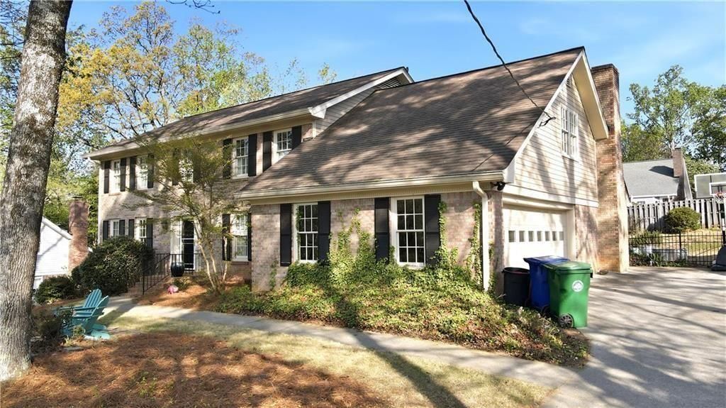 Situated in a highly sought-after Dunwoody community within the Vanderbilt school district, this well maintained three-sided brick home is tucked away on a quiet cul-de-sac and features a desirable side-entry garage. Enjoy unbeatable convenience to top-rated dining, shopping, and major interstates. The home offers an inviting layout, beginning with a formal dining room that flows into a spacious open-concept living area. The great room includes vaulted ceilings with exposed beams, custom built-in cabinetry, and natural light. The kitchen is equipped with a center island, granite countertops, tile backsplash, stainless steel appliances, double ovens, recessed lighting, and a bright breakfast area overlooking the private backyard. A main-level bedroom and full bathroom provide an excellent space for guests or a home office. Upstairs, dual staircases lead to four additional bedrooms and two full baths, including an oversized owner's suite featuring a sitting area, large walk-in closet, and an updated spa-like bathroom with a walk-in shower. The daylight walk-out basement expands the living space with a large game room and sitting area, along with fresh paint and new carpeting. An unfinished area offers a workshop and ample storage. Recent upgrades include a new HVAC system with HEPA filtration and blue light technology, newer Pella windows, plantation shutters, a newer water heater, and hardwood flooring throughout. The fenced backyard is a private retreat with lush landscaping, a screened porch, and an expansive patio?ideal for relaxing or entertaining.