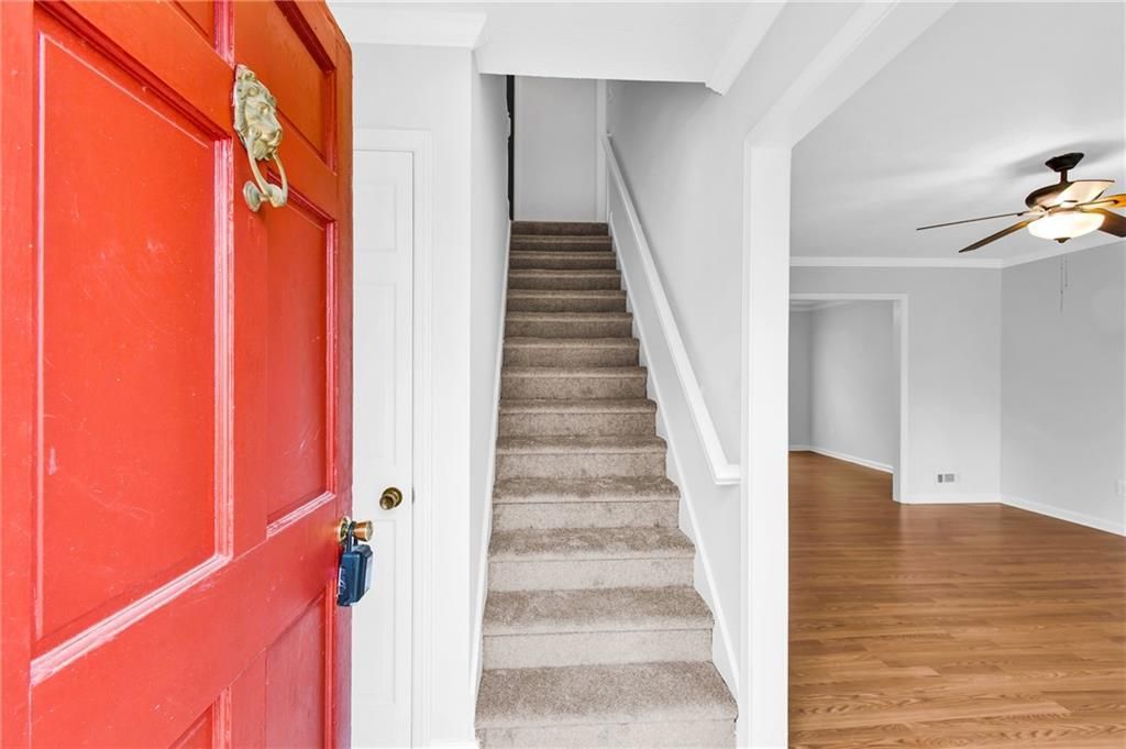 Nestled on a quiet, private cul-de-sac lot, this beautifully maintained 3-bedroom, 2.5-bathroom residence offers the perfect blend of comfort and convenience. The interior has been elevated with fresh paint and brand-new carpeting throughout, ensuring a move-in-ready experience. Gourmet Kitchen: Equipped with granite countertops, rich stained cabinetry, and premium stainless steel appliances. Refined Living Spaces: The main level boasts gleaming hardwood floors, an open-concept living room featuring a cozy fireplace with integrated bookshelves, and a formal separate dining room. Versatile Sunroom: A bright, expansive sunroom serves as the home's centerpiece, flanked by dual private decks?perfect for seamless indoor-outdoor entertaining. Spacious Accommodations: The upper level features a generous primary suite with His and Her walk-in closets, complemented by two additional well-proportioned bedrooms and a shared full bath. Convenience: Dedicated laundry room includes a washer and dryer for new home owner use. Prime Location: Enjoy effortless commuting and local amenities with a location that puts you minutes from I-285 and I-20. You are ideally situated near premier shopping destinations and popular local dining.