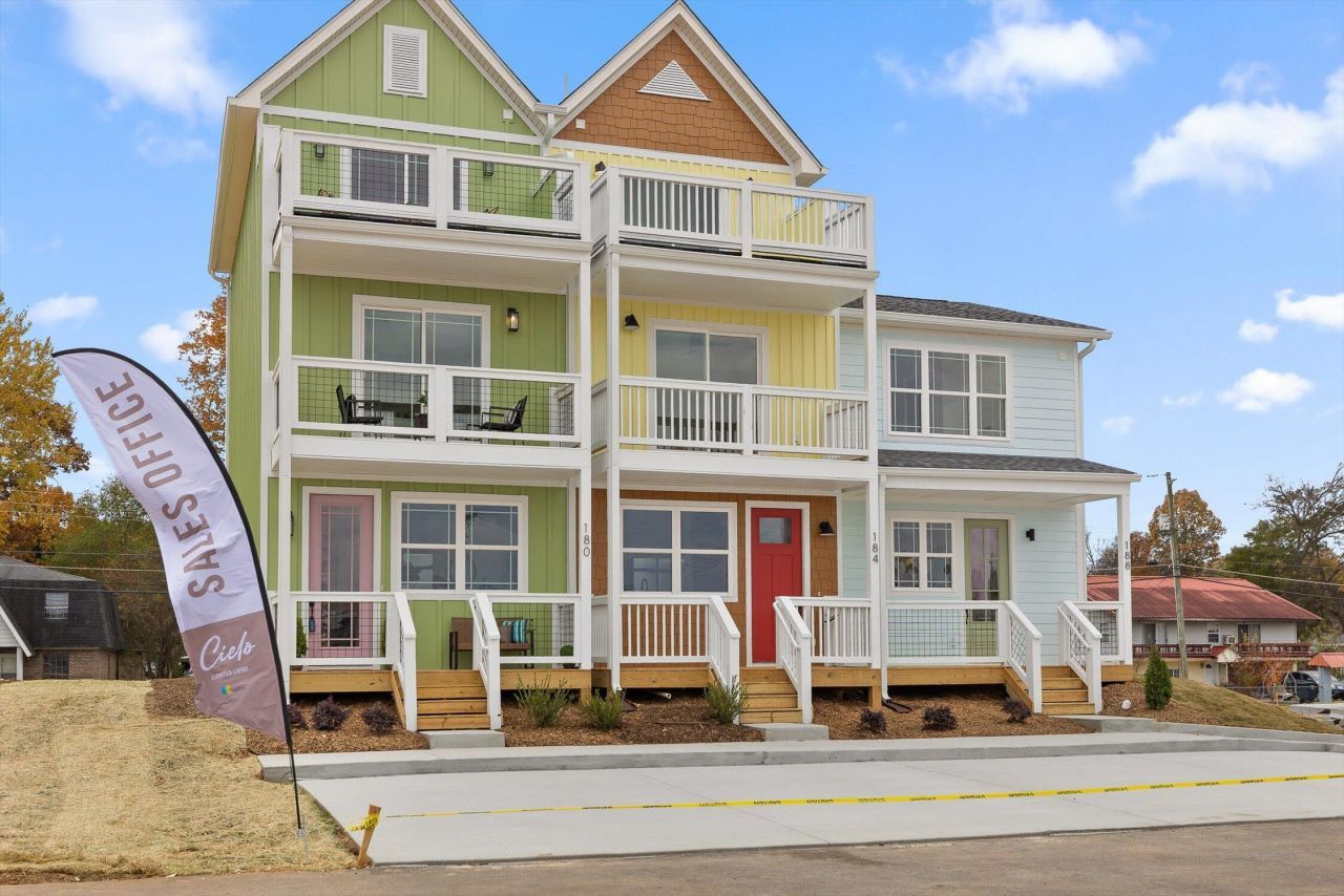 Welcome to Cielo Elevated Living, East Ridge's newest modern townhome community just 10 minutes to Downtown Chattanooga and walking distance to Parkridge East Hospital. This 3 bedroom, 2.5 bath B-Unit offers a bright, efficient layout with clean finishes, spacious living areas, and multiple outdoor spaces. The kitchen stands out with blue shaker cabinetry, white quartz countertops, a full matte-black herringbone backsplash, gold hardware, and a complete stainless Samsung appliance package?including the refrigerator. The open living area on the main level has light LVP floors, recessed lighting, and access to the first balcony. Upstairs, the primary suite includes a walk-in closet, modern lighting, and an upgraded bathroom with white quartz counters, double sinks, matte-black plumbing, and a tiled shower with contrasting white and charcoal tile. Two additional bedrooms share a clean, bright bathroom with matching blue cabinetry and gold accents. One of the standout features of this B-Unit is the third-level rooftop-style terrace, giving you a private outdoor space with open views?perfect for morning coffee or relaxing in the evenings. Additional highlights include smooth ceilings, energy-efficient construction, insulated windows, and professionally designed exterior color packages. These homes are not in a flood zone, investor-friendly, and open to mid-term rental opportunities. Seller is offering up to 3% toward buyer closing costs or upgrades with the preferred lender. Pricing for the 3 bed, 2.5 bath B-Unit starts at $325,000.