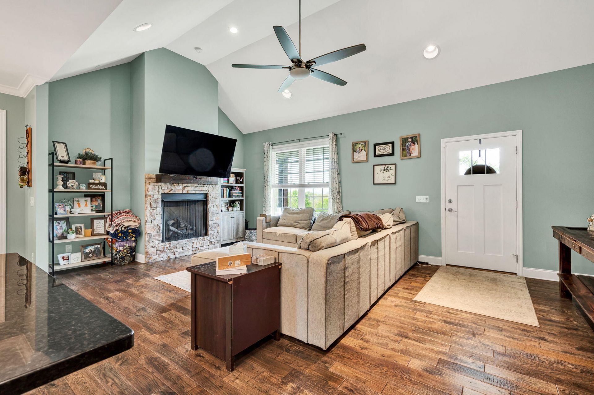 Welcome to this charming 3-bedroom, 2-bath ranch-style home offering comfortable one-level living with a functional and inviting layout. Inside, you'll find a warm and welcoming living space centered around a cozy gas fireplace--perfect for relaxing evenings at home. The interior features engineered hardwood providing both comfort and durability throughout.The spacious primary suite is conveniently located on the main level and includes a walk-in closet for ample storage. Step outside to enjoy the covered porch, ideal for morning coffee or unwinding at the end of the day while taking in the peaceful county road.Complete with an attached 2-car garage, this home combines practicality with charm--making it a perfect fit for a variety of lifestyles. Don't miss the opportunity to make this well-maintained property your own!