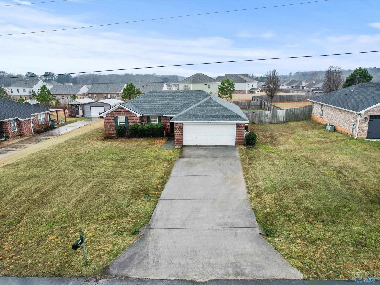Full brick 3BR/2BA home on a large lot with privacy fenced yard and extended property line beyond fence for approx. 90x220 size. Open family room with laminate floors and trey ceiling flows into kitchen with ample cabinet space and large breakfast area. Laminate flooring throughout main living areas, fireplace, and low-maintenance interior. Two-car garage. Quiet residential setting near Athens amenities and services and approx. ~35 min commute to Redstone Arsenal.
