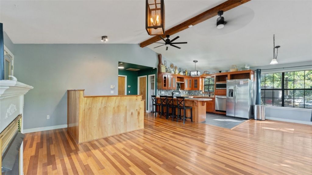 Just 0.4 miles from Beaver Lake in the Beav-o-Rama area, this cedar-sided home offers rustic charm, generous space, and versatility. The main level features two bedrooms along with an open kitchen and living room centered around a fireplace, plus access to a wraparound porch and balcony for relaxing among the trees. A spiral staircase leads to the lower level where you'll find a second living area along with two unfinished rooms, providing the perfect opportunity to finish them out as bedrooms, offices, or flexible living spaces to fit your needs. Set on nearly two-thirds of an acre, this home combines character with flexibility and proximity to the lake, making it ideal as a full-time residence, weekend retreat, or investment property.