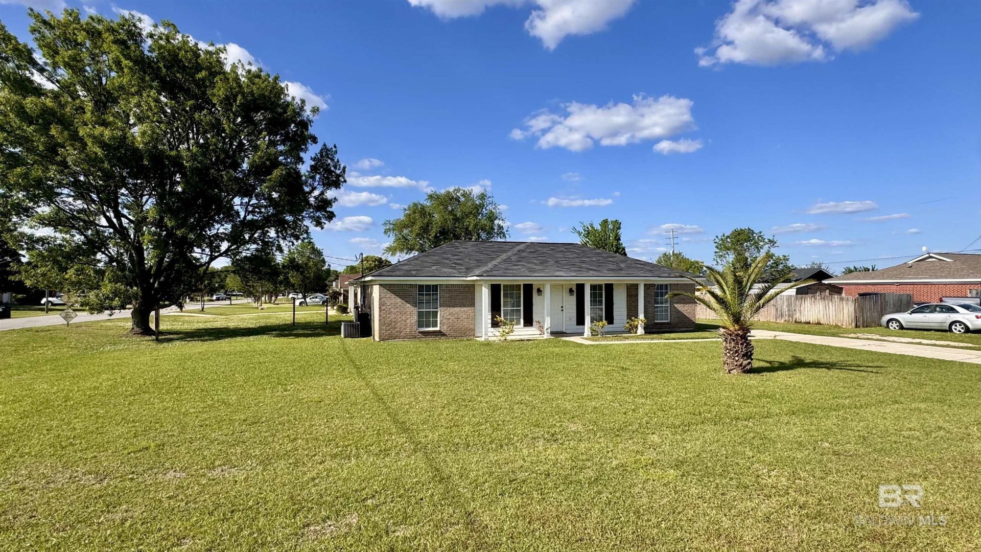 Adorable UPDATED and MOVE IN READY home in Robertsdale, the hub of Baldwin County! 3 BR/2 BA brick home located just .6/mile from Robertsdale High School in Dalewood. Renovated in 2024 with NEW ROOF, new water heater, new floors, new sinks and counters, new appliances, new paint and more. NO CARPET! In addition to the 3 bedrooms and 2 baths, other rooms include a living room, kitchen, dining area, and laundry room. Split bedroom floor plan with primary suite on one side of the home and bedrooms 2 and 3 and guest bath on the other side of the home. Primary suite has a walk in closet! There is also an outdoor storage closet. No known HOA! Corner lot, plenty of room for driveway parking. Schedule your showing today! Buyer to verify all information during due diligence.