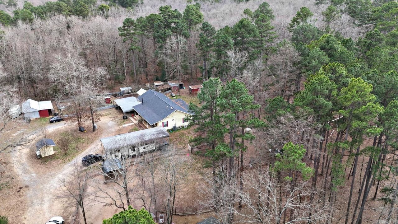 3-bedroom, 2-bath home on over 6 acres, set against a National Forest boundary and offering a mix of open and wooded land. The inviting open-concept layout works well for everyday living and gatherings, with central HVAC and a pellet stove for supplemental heat. A 440 sq ft sunroom, heated and cooled by a mini-split system and finished with a cedar ceiling, provides a comfortable year-round sitting or hobby area. The property includes access to a year-round creek and is convenient to nearby swimming holes, hunting areas, and side-by-side trails, subject to buyer verification of access and any use restrictions. Improvements include an attached garage, wiring for a whole-home generator, RV port with 50-amp hookup, and a safe room. Outside, the land is fenced and cross-fenced with pens and animal shelters, plus multiple outbuildings including shop and storage buildings, barn sheds, a 4-car carport, and a circle driveway. Buyers should verify acreage, improvements, utilities, and intended uses with the appropriate authorities.