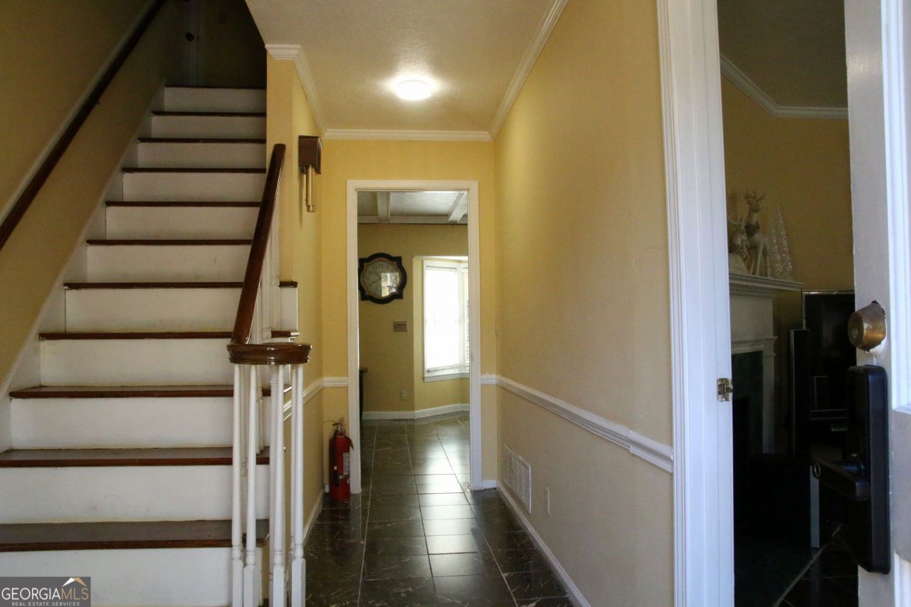 This home features a newly replaced roof and four-sided brick construction. With 9 bedrooms and 7 bathrooms, it is conveniently located near downtown West Point and easy access to I-85. The property offers a spacious kitchen with upscale tile backsplash and a large formal dining room directly connected to the foyer. The family room, featuring a brick fireplace, overlooks a large rear deck. The deck is newly covered, making it perfect for entertaining and hosting parties. The expansive partial basement includes one full bathroom, a study area, and two additional rooms that can be used as extra bedrooms or hobby spaces. A large utility room in the basement provides ample space for multiple appliances. The home also offers a circular driveway in the front and a spacious parking area in the back, providing abundant parking.