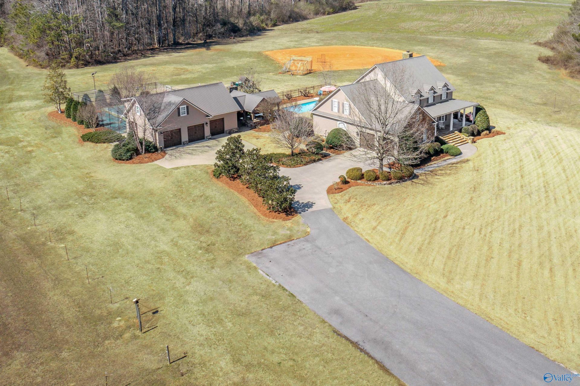 Stunning Estate on +/- 12 acres featuring a 3800 square ft main home with 4 BR/3.5 BA, main level master with gorgeous updated bath, eat-in kitchen, family room w/fireplace, dining room, office, media room & a bonus space with built-ins that's a perfect craft room/home school space. 3+ car detached garage with 1/2 bath (pool access), commercial ice maker + apartment w/full kitchen, 1 BR/1BA. Outdoor amenities - stocked pond, screened porch, pool, sports court (basketball/pickleball/tennis), batting cage, baseball field, horseshoe pits, pavilion w/fireplace & outdoor kitchen. Sonos surround system, irrigation, pro landscaping and more! Add'l +/- 13 acres available with +200 yd driving range.
