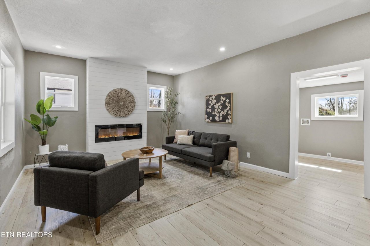 Qualifies for low- to no-down-payment loan programs! Welcome home to this beautifully renovated 2-bedroom, 1-bath Craftsman located on a level lot in one of Knoxville's most vibrant neighborhoods. Step inside to an inviting open-concept floor plan highlighted by a statement fireplace that anchors the living room-perfect for cozy nights or entertaining guests.The light-filled kitchen features a picture window over the sink, stainless steel appliances, granite countertops, and abundant cabinetry, creating a functional and stylish space for everyday living. Solid-surface flooring throughout offers durability and easy maintenance. The updated bathroom showcases a custom tile shower with modern finishes.Enjoy outdoor living in the spacious backyard, ideal for relaxing, hosting friends, or giving pets and kids room to play. Everything is brand new, including the roof, windows, electrical, plumbing, HVAC, and more, offering peace of mind and move-in-ready convenience.Don't miss this incredible Knoxville home-schedule your private tour today!