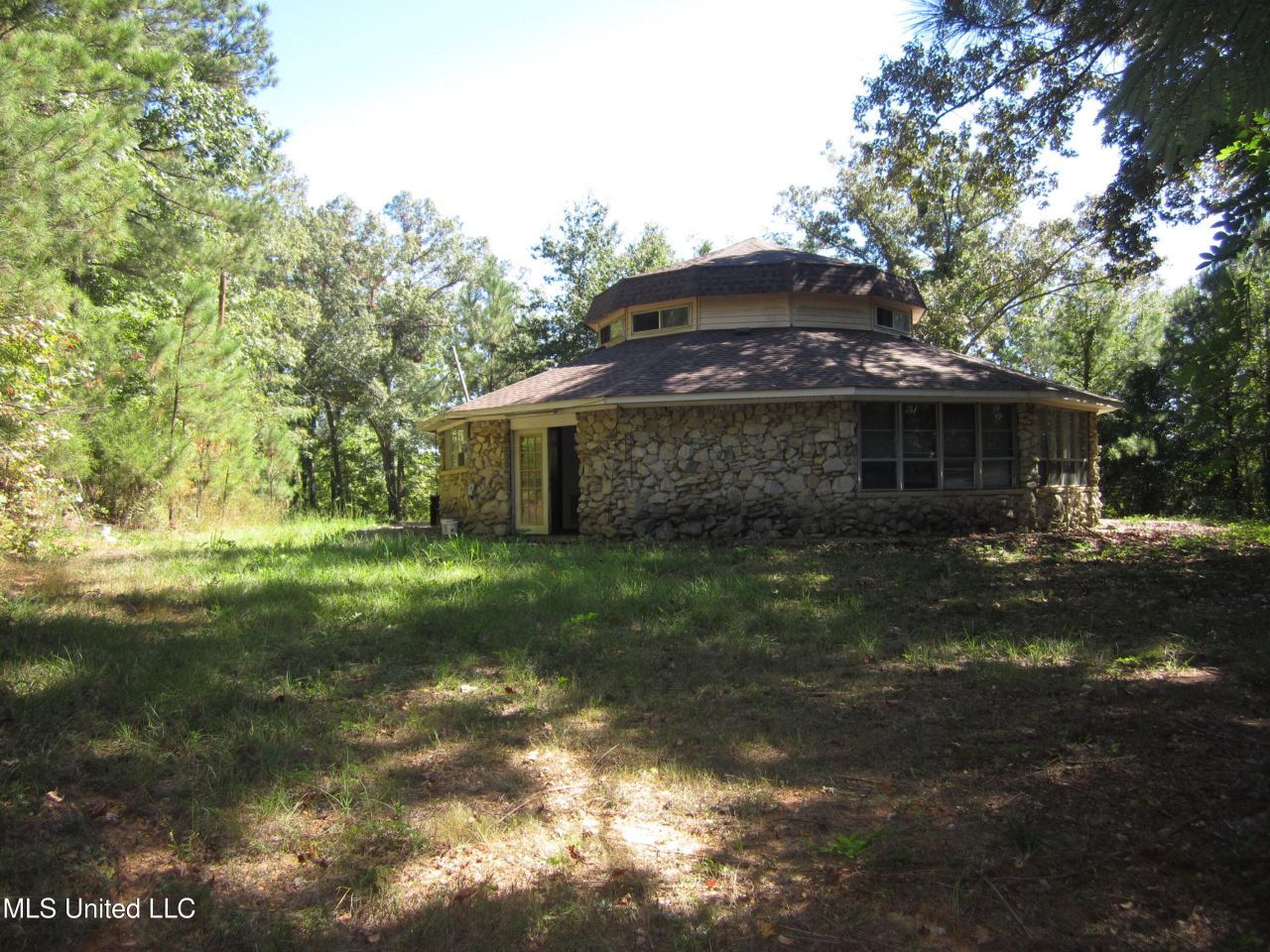 Investors don't miss this unique 1,711 sf 12-sided stone house situated on 2.70 wooded acres on Blue Ridge Road north of Tremont. This serene country setting is only 6 miles to Tremont, 12 miles to Fulton, 24 miles to Hamilton or 30 miles to Tupelo. The house appears to be structurally sound with a new roof but needs interior finish. The frame is wood and steel. The home features 6 rooms, 2 bedrooms, 2 bathrooms, kitchen, living room and utility room downstairs and a large bonus room upstairs. Heating/cooling is provided with a central unit. There is a flue for a wood heater and a large shed for storage. The Itawamba County Tax Assessor has said that there is an error in the property maps and the deed is correct. The parcels as shown on the map should be shifted south.