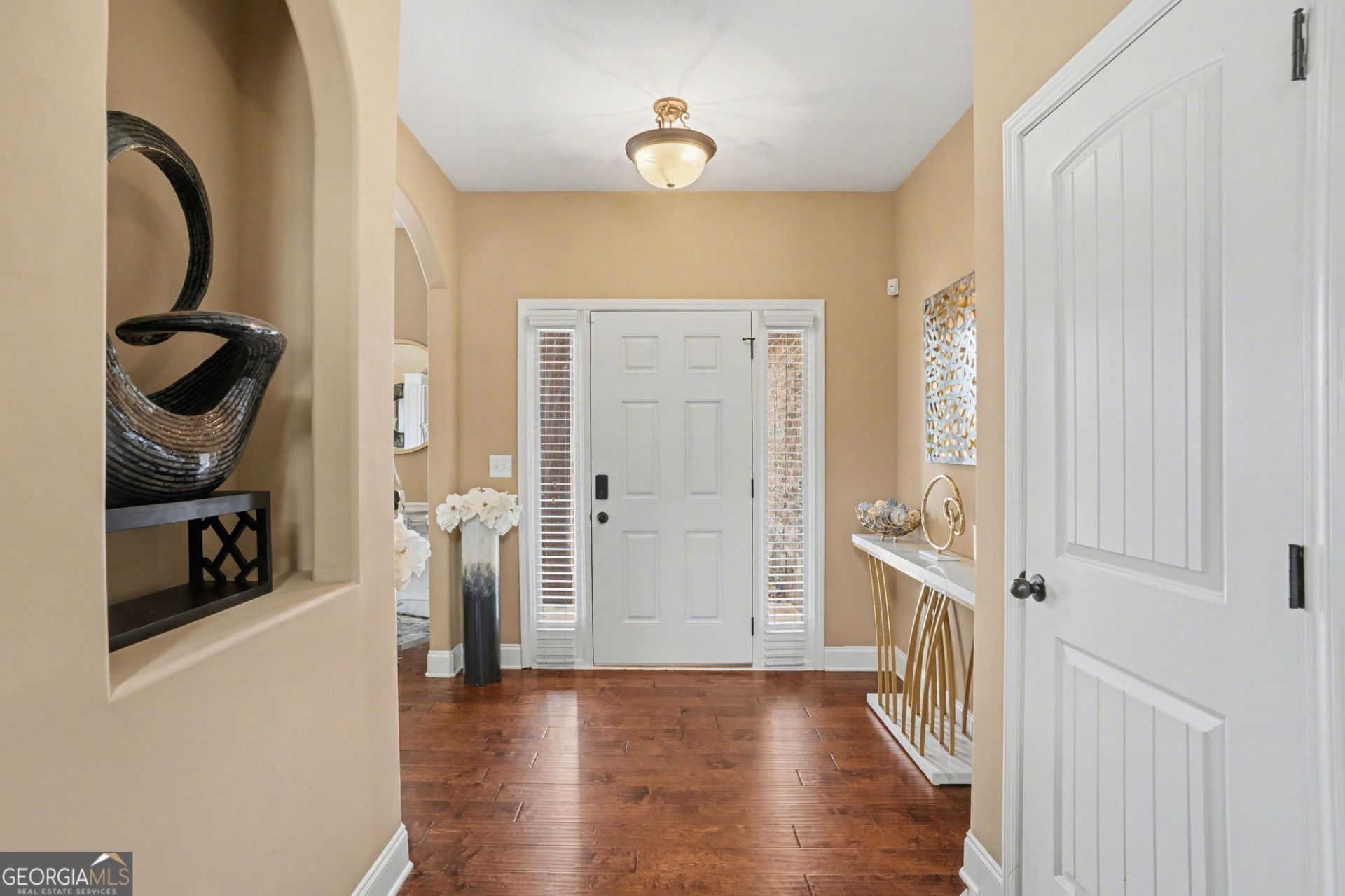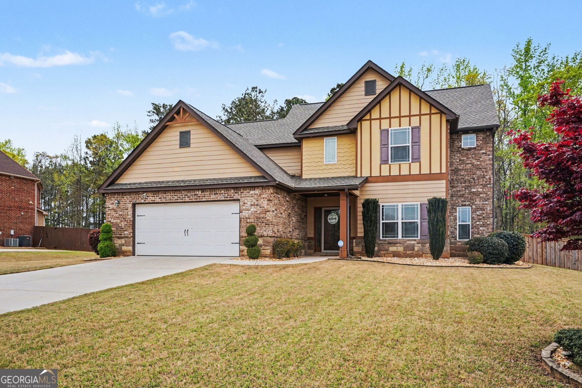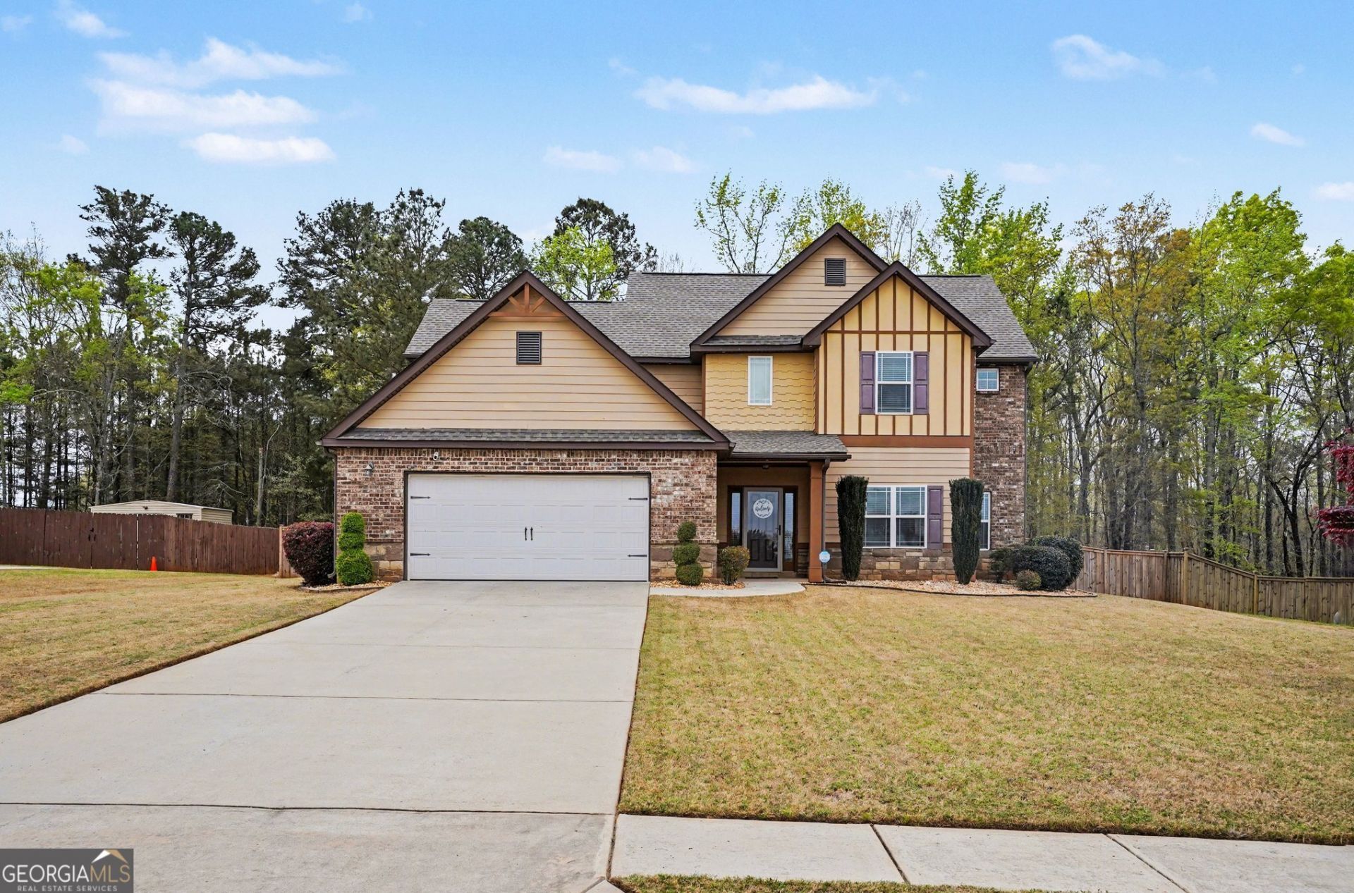 Welcome to this beautiful property located in a smaller, established neighborhood right across from the highly sought-after Ola High School, with the entire Ola School cluster conveniently close by. Tucked away on a private lot, this home offers a peaceful wooded backdrop, architectural accent lighting and a spacious yet intimate yard. Relax and entertain from the covered back porch, perfect for enjoying evenings year-round. Inside, the thoughtfully designed floor plan strikes the perfect balance between open-concept living and defined, upscale spaces. The kitchen opens seamlessly to the living area, while the elegant dining room with a coffered ceiling adds a touch of sophistication. The grand two-story family room is filled with natural light from expansive windows and anchored by a cozy natural gas fireplace. The kitchen features ample upgraded cabinetry and a gas range, sure to delight home chefs.The over sized primary suite on the main level easily accommodates large furniture and offers space for a sitting area or additional workspace. Also on the main floor is a half bath-perfect for guests. Upstairs, a private bedroom suite with its own bath and walk-in closet offers comfort and privacy. Two additional bedrooms with custom closets share a well-appointed bathroom, providing plenty of room for everyone. Sellers are motivated. Don't be afraid to ask about items in the house; everything is negotiable. This home truly combines location, privacy, and thoughtful design-don't miss the opportunity to make it yours!