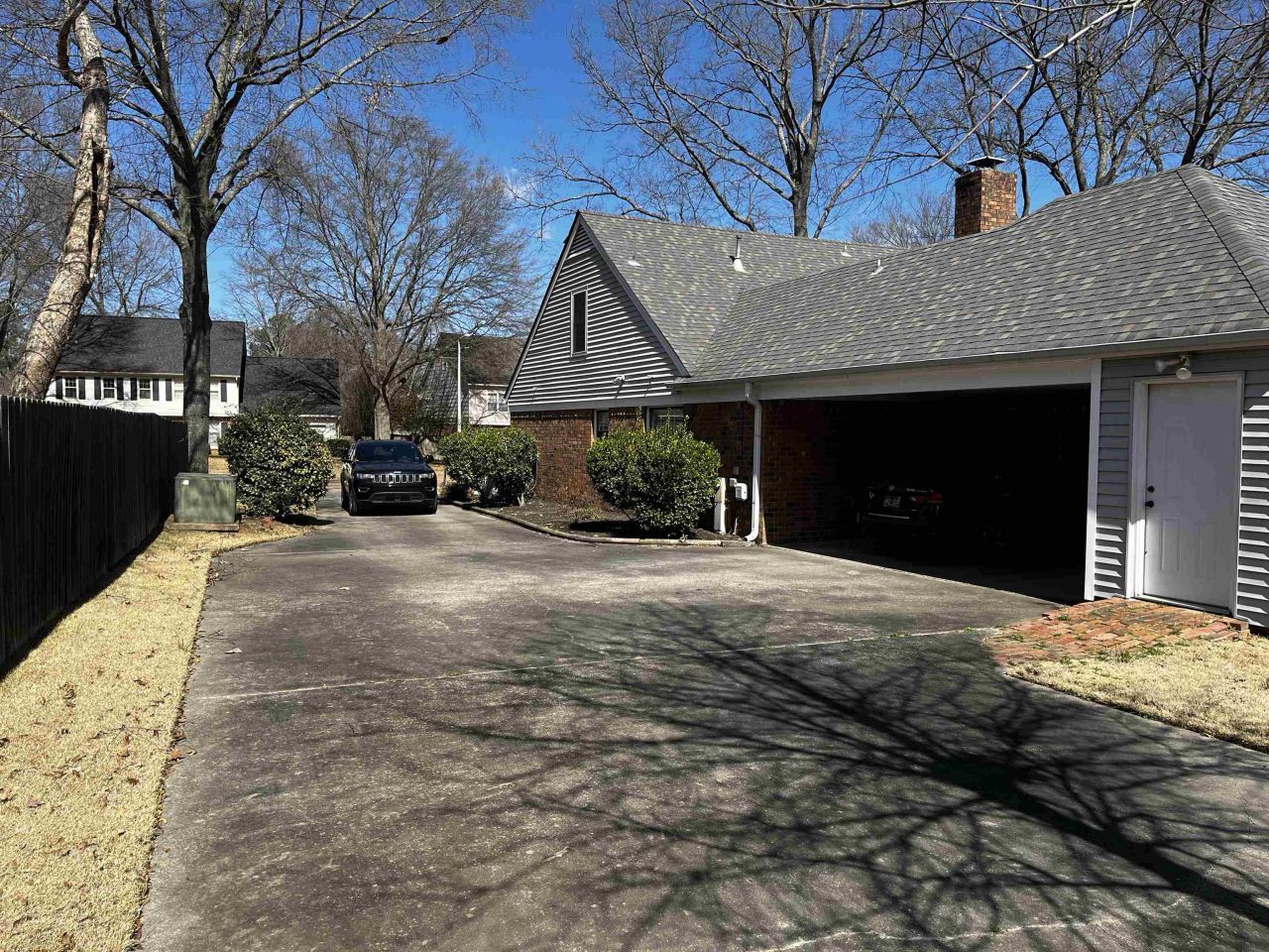 Hurry, Hurry! Very well kept 3BR/2Bath home all on one level with separate Living/Dining/Den. All bedrooms spacious, especially the primary BR. Fireplace and Laminate floor in Family room and hallway, carpet in bedrooms but in excellent condition. Plantation Shutters on all windows! Enormous expandable attic with permanent stairs form family room. Attached 2-car side-load carport. Driveway is in pristine condition. Wonderful Screen porch with separate door from primary BR overlooking well-manicured lawn (mostly fenced). All spacious rooms. Updated Kitchen is extra wide too. Walking distance to Farming Elementary and Farmington Park. Easy to see!
