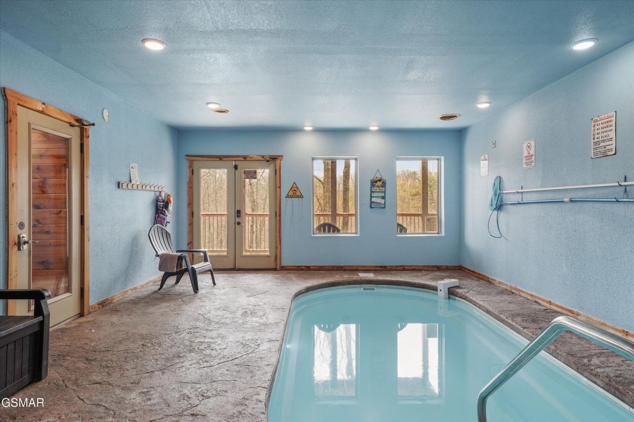 Built in 2020, this 4-bedroom, 4.5-bath cabin offers approximately 3,042 square feet across three levels and is being offered as a turnkey short-term rental opportunity. The property features a private indoor heated pool, theater room, arcade, and mountain views of Mt. LeConte.Located less than 10 minutes from downtown Gatlinburg on approximately 0.3 acres, the cabin offers convenient access to area attractions while still providing a true Smoky Mountain setting.The layout comfortably sleeps up to 12 guests, with four king bedroom suites, each with its own private bathroom and flat-screen TV. The lower level includes a bunk room with two queen-over-queen bunks, and the living room offers an additional sleeper sofa.Interior features include luxury vinyl plank flooring, tongue-and-groove walls, exposed log beams, and a stacked stone gas fireplace. The kitchen is equipped with granite countertops, hickory cabinetry, stainless steel appliances, and a bar-height island designed for gathering and entertaining.Entertainment amenities include a dedicated theater room, arcade games featuring Golden Tee, Buck Hunter, and Multicade systems, and a private indoor heated pool with access to the deck.Outdoor spaces include three full-length decks with rocking chairs, a hot tub, and a gas grill, all positioned to enjoy Smoky Mountain views.Additional features include high-speed internet, sports channels, washer and dryer, and access to a neighborhood outdoor heated pool.