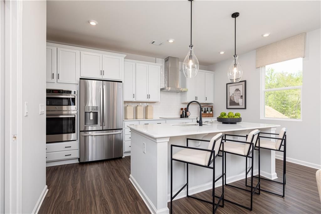 New Construction Single-Family Home in Riverside Ridge ? The Kershaw Plan by Stanley Martin Homes. READY IN MAY!Welcome to Riverside Ridge, a vibrant new Lawrenceville community offering desirable amenities and a convenient location. This brand-new Kershaw home located on homesite #79 combines modern functionality with everyday comfort, featuring 4 bedrooms and 3 full baths thoughtfully designed across two levels.Step into the welcoming foyer, where a versatile main-level bedroom with full bath awaits ? perfect for guests or a private home office. The open-concept family room, dining area, and gourmet chef's kitchen create the heart of the home. The kitchen is designed to impress with a large quartz center island with seating, a spacious walk-in pantry, and abundant 42 cabinet storage. A rear patio just off the dining area extends your living space outdoors, ideal for entertaining or quiet evenings.Upstairs, the serene primary suite offers a spa-like bath with dual vanities and an expansive walk-in closet. Two additional bedrooms, each with walk-in closets, provide plenty of space for family or guests. A versatile flex room on this level offers endless possibilities ? from media space to playroom or study nook. For convenience, the laundry room is located upstairs near the bedrooms.Discover your dream home at Riverside Ridge in Lawrenceville, GA, with top-tier schools and easy access to major business corridors. Enjoy lush green spaces, local attractions, and community amenities like a pool and a cabana. Own a stunning single-family home crafted to enhance your lifestyle and bring your dreams to life.This home won't last long! Schedule your private tour today and ask about our incredible builder incentives! ***This home is currently under construction. Photos are of a similar completed model and are intended to showcase the home's layout and finishes***