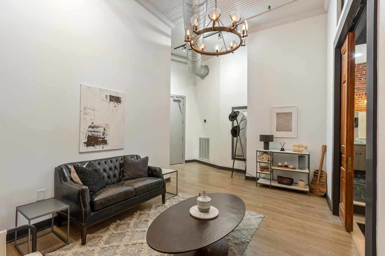 Welcome to the High Note on Printer's Alley, where timeless character meets modern design and every detail is rooted in legacy. This 1890's loft lies in the heart of historic Printer's Alley where unmatched walkability and location brings Nashville's vibrant culture to your doorstep. The High Note offers a fully furnished, three-bedroom, three bath residence that boasts 2,700 square feet of living space. Enjoy sweeping views of the alley from your private New Orleans style balcony or experience a more serene view through the living room's acoustic glass windows. The interior pays tribute to its storied past with soaring 14-foot ceilings and original exposed brick along with thoughtfully curated upgrades--hardwood floors, custom lighting, gourmet kitchen, fully equipped wet bar and more. The attached parking garage offers convenience with residential parking and direct access to your loft. Furnishings will convey