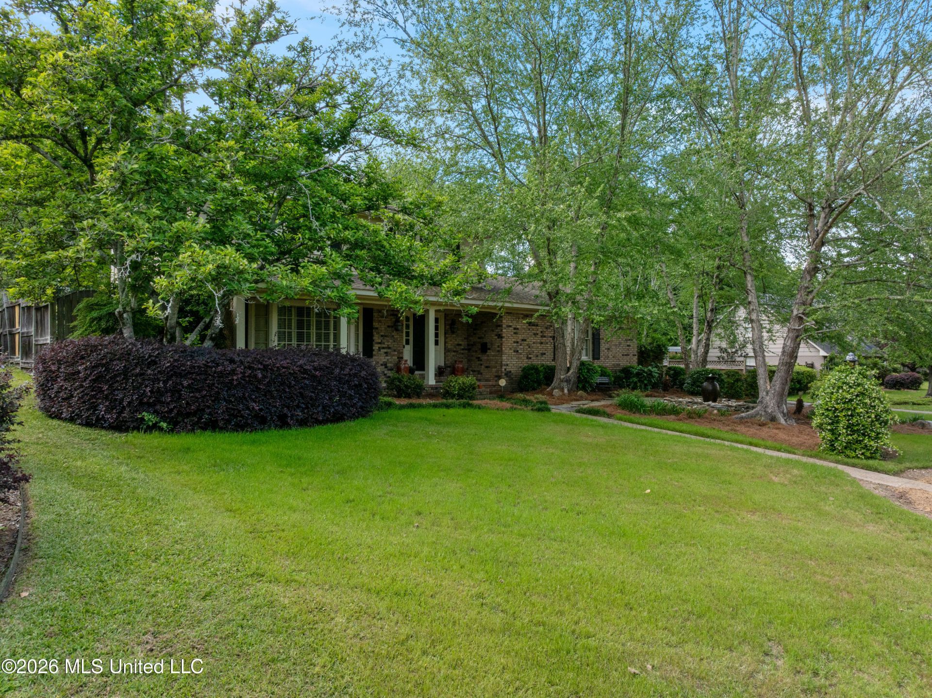 Spacious Midtown Hattiesburg home with character you don't see every day! Set on a beautifully shaded lot with mature trees and established landscaping, this two-story brick home has a welcoming front porch framed by classic columns and shutters. A curved walkway leads to the front entry, while the extended drive continues to a private electric gate that opens to the rear parking area and carport. Inside you will find Chicago brick flooring running throughout the entire downstairs, adding warmth and texture that immediately sets this home apart. The great room is oversized with a full brick gas fireplace, wood mantel, and built-in space above, surrounded by windows and French doors that bring in natural light from multiple directions. The kitchen features custom cabinetry with detailed trim work, granite countertops, and a raised bar with seating. Appliances include a stainless refrigerator, double wall ovens, built-in microwave, dishwasher, and smooth cooktop. A window over the sink looks out to the backyard. Adjacent dining space connects easily to the outdoor areas through French doors. The main level also includes a stylish half bath with bold patterned wallpaper, a glass vessel sink, and granite countertop. The primary suite on the first level features detailed wall molding, large windows with plantation shutters, and continued Chicago brick flooring. The en-suite bath has a tiled walk-in shower with a bench seat, built-in niches, and a glass enclosure, along with a vanity with storage and modern fixtures. Upstairs is a second primary suite with full bath and three additional bedrooms. All additional bedrooms offer generous space, natural light, and consistent finishes throughout. Out back, the property opens into a fully designed outdoor space with multiple patio areas, brick accents, and extensive landscaping. A 3,000-gallon water feature with rock detailing creates a focal point, while surrounding greenery and hardscaping give the yard a finished, established feel. A separate guest house sits at the rear of the property and includes a kitchenette, stove, and half bathroom (shower could be easily added). Additional features include a whole-home dehumidifier integrated into the HVAC system and a generator hookup for backup power. This Midtown location puts you close to everything while offering a private, tucked-away setting with standout features inside and out. Schedule your private viewing today!