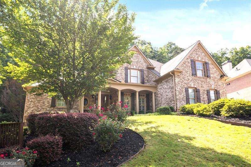 Discover timeless elegance and modern comfort in this beautifully updated 4-bedroom, 3.5-bath home located in Woodmont Golf and Country Club. From the moment you arrive, you'll be impressed by the charming curb appeal and new custom mahogany front entry door. Step inside the grand foyer, where custom iron stair rails create a striking focal point. The main level features real hardwood floors, wood plantation shutters, and detailed crown molding throughout, showcasing exceptional craftsmanship. The open-concept layout seamlessly connects the remodeled gourmet kitchen to the spacious keeping room-perfect for entertaining or everyday living. The chef's kitchen boasts a large island, sleek countertops, ample cabinetry, and new upgraded light fixtures. The elegant family room flows into a versatile space ideal for a home office or playroom. The primary suite is conveniently located on the main level and offers spa-like amenities and generous closet space. Upstairs, enjoy brand new carpet, two generously sized bedrooms, and an oversized bonus room providing flexible options for guests, a media room, or work-from-home needs. Additional features include designer wallpaper in the powder room, an unfinished basement with limitless potential, and an added electrical outlet ready for a future sauna. Exterior highlights include an irrigation system, gutter guards, an extra-wide driveway, and a 3-car garage. Enjoy resort-style living with access to Woodmont's award-winning Robert Trent Jones Jr. golf course, two private restaurants, fitness center, pro shop, two pools, tennis courts, pickleball, and more. Memberships are available, with select amenities exclusive to members.