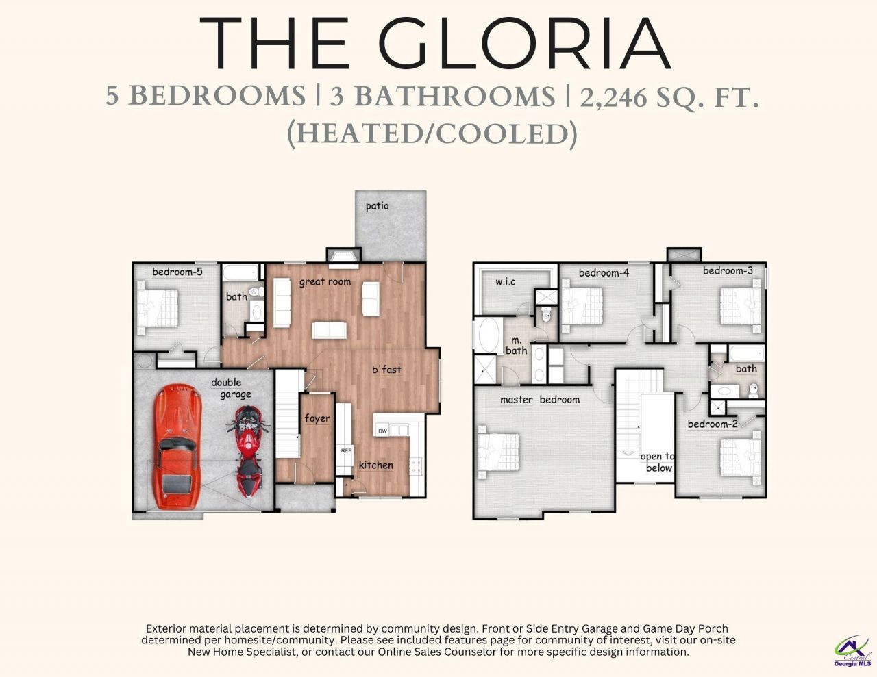 Discover the charm of this Hughston Homes community with the thoughtfully designed Gloria A Floorplan, offering 2,246 sq ft of energy-efficient living space crafted for comfort and everyday living. This inviting home features a Spacious Great Room, Large Open Kitchen, 5 Bedrooms, 3 Full Baths, a 2-Car Garage, and a covered Social Patio, perfect for outdoor entertaining. Ask about our Included Home Automation! Step inside and enjoy a bright, open-concept layout filled with natural light from the welcoming entry foyer. The Spacious Great Room serves as the heart of the home and is highlighted by a cozy wood-burning fireplace, creating the ideal setting for relaxing or gathering with friends. The Large Kitchen offers stylish cabinetry, granite countertops, a tiled backsplash, stainless steel appliances, and ample workspace, designed for both functionality and everyday ease. A 5th Bedroom and Full Bath on the main level provide flexibility for guests, home office space, or multi-generational living. Upstairs, retreat to the generously sized Owner's Suite, offering a peaceful place to unwind. The Owner's Bath features a Garden Tub, a Separate Shower, and an oversized Walk-In Closet. Additional bedrooms provide generous closet space, with a conveniently located Laundry Room and Hall Bath just steps away. Enjoy luxury flooring throughout the main living areas, featuring a wide array of Hughston Homes' included features, and step outside to the Covered Social Patio, the perfect space for fall football, entertaining, or relaxing year-round.