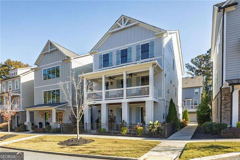 This five bedroom home, located in the heart of Downtown Woodstock, has a clean, designer look from the moment you pull up. The exterior was painted last week, and the iron fence frames the property nicely. The front porch has under-decking overhead, and the upper deck is finished with Brazilian teak boards, giving it a rich, warm feel. Inside, the details stand out right away. Crown trim runs through the whole home, even in the garage. The main level has fresh Brazilian oak floors with a soft matte finish, tall coffer ceilings, new iron stair rails, custom lights, and wide plantation shutters. Two of the bedrooms have board-and-batten walls that add style without feeling busy. The kitchen has floor-to-ceiling cabinets, a sharp tile design behind the stove, and a layout that feels open and easy to use. The home also gives you two full main suites-one on the main level and another on the top floor-great for guests, long-term family, or just day-to-day comfort. The garage has epoxy floors, and the attic has spray foam and its own stairway for simple access. There's also a pre-constructed elevator bank on all floors for an easy elevator install. If you're looking for a home with strong craft, fresh updates, and a ready-made designer feel, this one delivers it from top to bottom. Walkable to Downtown Woodstock.