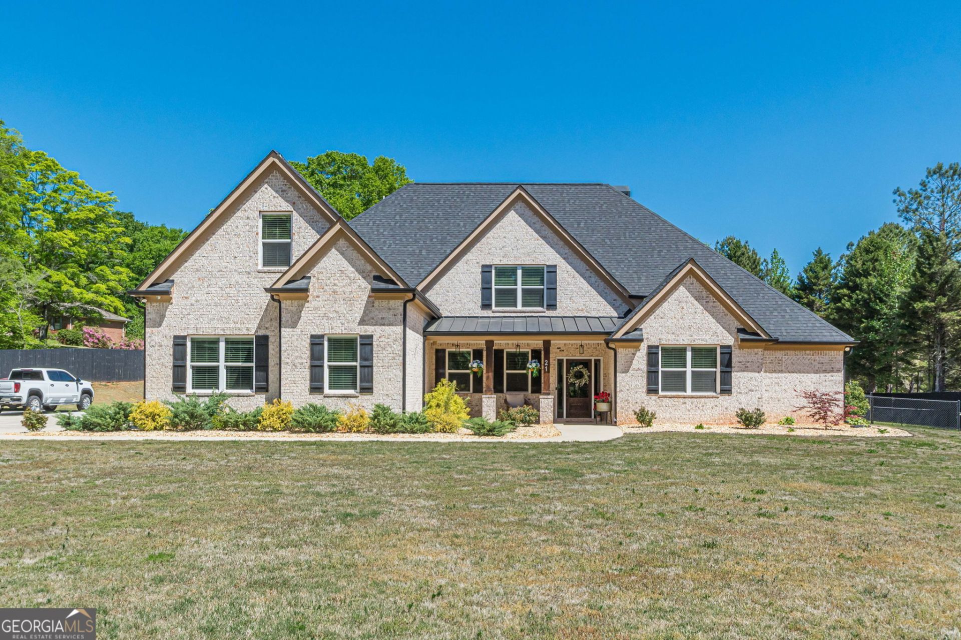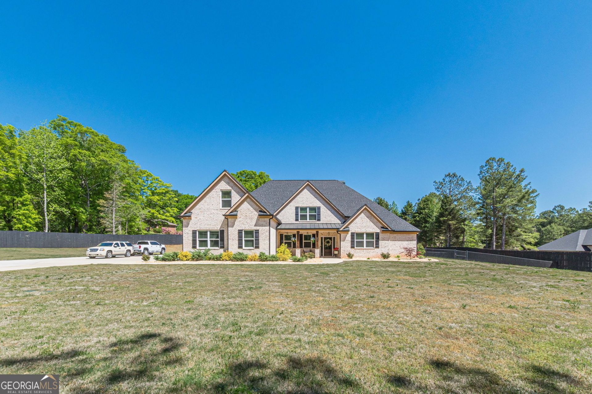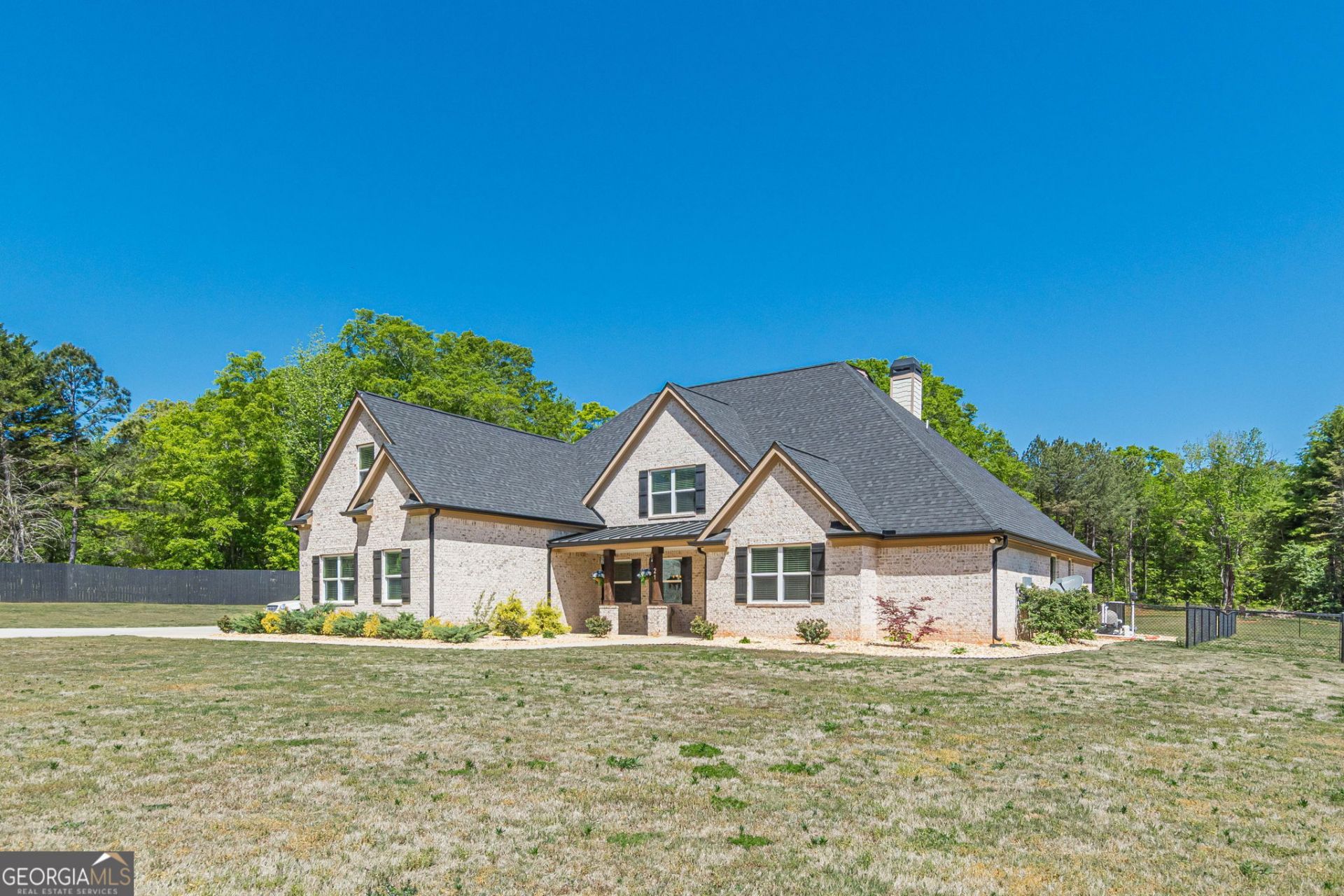 Private acreage, resort-style outdoor living and a like-new home...this property truly has it all! Beautifully maintained, this four-sided brick home sits on 3.24 private, fenced acres and offers the feel of a nearly new home. Built in 2021, it features 5 bedrooms and 4 full bathrooms with a well-designed, functional layout. The main level includes the primary owner's suite with sitting room and elegant bathroom along with a secondary guest bedroom and full bath. A separate formal dining room sits just off the entry and breakfast room opens to a small keeping room for more casual living space. The kitchen is the true focal point of the home, featuring two large islands (perfect for prep work and causal dining), quartz countertops, upgraded cabinetry (including wood vent hood), and a hidden cabinet door that leads to a walk-in pantry....ideal for both everyday living and entertaining. Kitchen opens to living room which is anchored by a floor-to-ceiling stone fireplace, creating a warm and inviting space. Upstairs, three spacious secondary bedrooms include a Jack and Jill bath shared by two bedrooms and a private ensuite bath in the third. Outdoor living is just as impressive with a covered back porch overlooking the 20x40 heated in-ground pool with spa and paver surround. The backyard is fully fenced and includes a separate dog run. A pool house with full bath and kitchenette adds additional flexibility for guests or entertaining. Conveniently located with easy access to I-20, this property offers privacy without sacrificing accessibility.