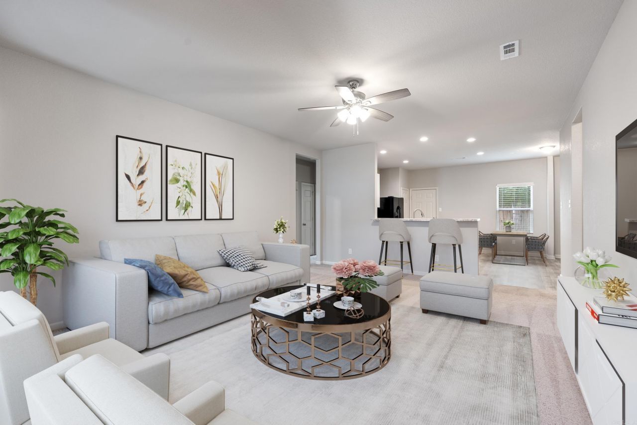 This home is quite deceiving in size from the outside, but it offers 1,644 sqft with 4 bedrooms and 2 baths. All walls have been freshly painted with one neutral color throughout and the home is sparkling clean for your move-in day. The home also has an open concept with 9' ceilings, a bar-top counter, and a kitchen-dining combo. This all lends to be the perfect place for hosting friends and families. A split floor plan gives way to a spacious primary suite with a large bathroom and walk in closet. An east facing backyard borders a nice row of trees, so you'll have the perfect place to hang out on these warm summer evenings. Less than 5 minutes to all the shopping and restaurants you could want. Make a call today to schedule your showing.