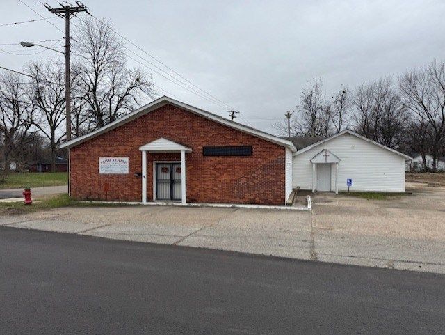 Nice brick commercial building on corner lot: This building was formerly used as a church. It has around 2,000 square feet (more or less) according to the sellers. Plenty of open space, kitchen area, office, lots of storage closets and an office, two restrooms, all in good shape. There is lots of parking. This building can be used for lots of different purposes. It would make a nice venue for parties or weddings. The possibilities are endless.