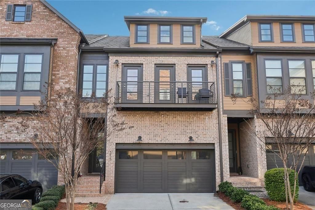 PRICE IMPROVEMENT AND $5000 SELLER CREDIT to use anyway you like. Put it towards closing costs, rate buydown, initiation fee, etc. This beautifully upgraded townhome in sought-after GATED Overture at Encore offers modern luxury, thoughtful design, and effortless living across three spacious levels-all conveniently serviced by a private ELEVATOR. The main level welcomes you with an inviting foyer that opens to a bright, open-concept living and dining area. The stylish kitchen features white soft-close cabinetry, white quartz countertops, Kitchen Aid double ovens, 5-burner gas cooktop, and pantry, creating a sleek yet functional space perfect for everyday living or entertaining. French doors lead to a spacious balcony, ideal for relaxing outdoors. A half bath and access to the two-car garage complete the main level. Upstairs, the expansive primary suite with PRIVATE DECK, perfect for enjoying your morning coffee overlooking the neighborhood water feature. The spa-inspired primary bath features an oversized glass-enclosed shower with tiled bench, soaking tub, double vanities, abundant storage, and a large walk-in closet. Two additional bedrooms with PATIO ACCESS, a full bath, and a laundry room with sink provide comfort and convenience on the upper level. The terrace level offers incredible flexibility with a bedroom or private office, full bath, generous storage, and a large recreation/media room. Step outside to a covered patio, fenced area, perfect for relaxing or entertaining. EACH FLOOR OFFERS OUTDOOR SPACE. Located in the gated community of Overture at Encore, residents enjoy resort-style amenities including a pool with waterfall, clubhouse, bocce ball court, and fire pit. The community is within walking distance to Ameris Bank Amphitheatre and Topgolf Alpharetta, and just minutes from Avalon and Downtown Alpharetta the shopping, dining, and entertainment that make Alpharetta one of North Atlanta's most desirable destinations. The HOA handles landscaping, lawn care, termite protection, and exterior maintenance, allowing you to enjoy easy, luxury living with minimal upkeep.