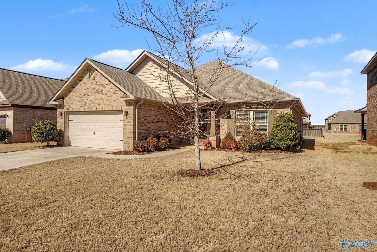 Well-maintained full brick ranch in Colonial Pointe. Built in 2018, this home features 3 bedrooms, 2 full baths, a flexible bonus space ideal for an office or playroom, and a 2-car garage. The open floor plan connects the kitchen and main living area, with granite countertops, ample cabinetry, and durable LVP flooring throughout the primary living spaces. The isolated primary suite includes a spacious bedroom, double-vanity bath, and oversized walk-in closet. Covered front and rear patios sit on a flat, low-maintenance lot. Sidewalk neighborhood with underground utilities, public water/sewer, and convenient access to Publix, Colonial Golf Course, Huntsville, Madison, and Redstone Arsenal.