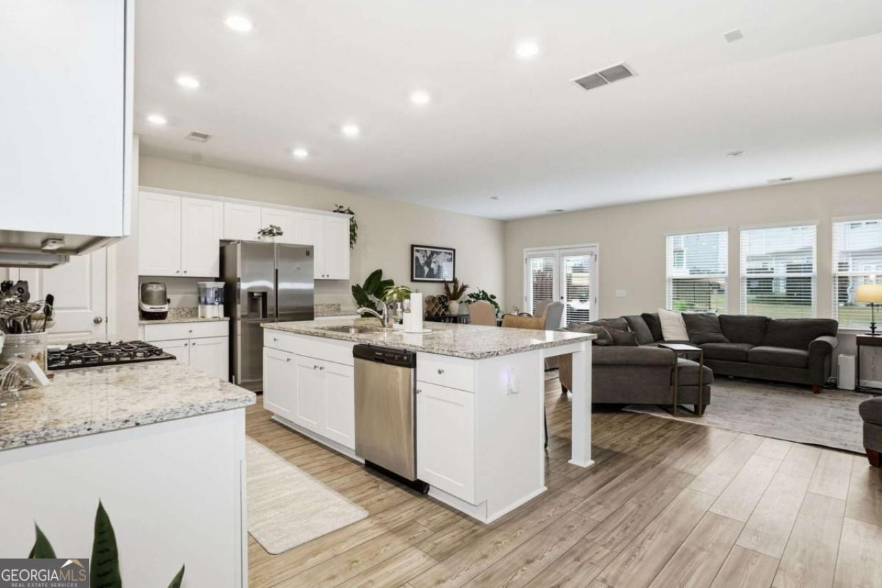 Enjoy the best of Lake Lanier living in this beautifully maintained end-unit townhome located in the sought-after Harbor Landing community and within the highly acclaimed Buford City School District. Just moments from the lake, this better-than-new 3-bedroom home features the popular Smithtown floorplan, designed with an open layout that offers both comfort and functionality while filling the home with natural light from multiple exposures. The spacious kitchen serves as the heart of the home, highlighted by a large stone-topped island, abundant prep space, and seamless flow into the dining and living areas-ideal for both everyday living and entertaining. The generous primary suite provides a relaxing retreat with a walk-in closet and private bath featuring dual vanities, a soaking tub, and a separate walk-in shower. Two additional bedrooms, a dedicated laundry room, and flexible living space allow for guests, work-from-home options, or hobbies. Outside, enjoy a beautifully landscaped backyard with peaceful sunset views-perfect for outdoor dining, gatherings, or simply unwinding at the end of the day. Harbor Landing offers a resort-style atmosphere while remaining close to shopping, dining, parks, and recreation, making it easy to enjoy everything Buford has to offer while being just minutes from Lake Lanier. This one won't be available for long... schedule your showing today!!