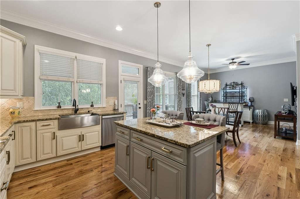 Luxury townhome just minutes from sought-after Bridgemill Golf and Athletic Club and Lake Allatoona. Upgrades include new porch screens, terrace-level HVAC/electrical, full billiard and storage rooms with HVAC, a fully wired elevator shaft, and commercial-grade epoxy flooring with upgraded lighting in the oversized garage. The chef's kitchen boasts a farmhouse sink, stone counters, and designer custom cabinetry with abundant storage. The spacious layout allows for a personal bar. In the living room, custom built-ins surround a gorgeous stone fireplace, while the formal dining room sets the perfect stage for hosting. Primary suite is a true retreat with a brick feature wall, trey ceiling, crown molding, and a dreamy custom walk-in closet. The spa-inspired bath features double vanities, a water closet with linen storage, a soaking tub, and a walk-in shower. Upstairs, you'll find three spacious bedrooms, a guest bath, a versatile loft, and a laundry room with custom cabinetry and a large linen closet. Terrace level offers incredible flexibility with HVAC, electrical, and rough plumbing already in place for a bath. Step outside to the large covered and screened-in back deck with ceiling fan, blinds, and electric?perfect for year-round entertaining. Schedule your showing today!