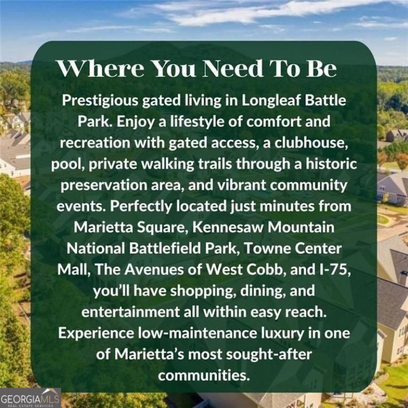 PREMIER GATED 55+ COMMUNITY WITH PRIMARY ON MAIN, $50K IN RECENT IMPROVEMENTS, AND BRAND NEW HVAC (2025) IN A LOW-MAINTENANCE, ACTIVE NEIGHBORHOOD WITH LIMITED AVAILABILITY. FROM THE OWNERS Living here has been about comfort, simplicity, and connection. From the moment you walk in, the home feels calm and easy to live in, with a layout that just works for everyday life. The primary suite on the main level has been one of our favorite features. It's spacious, quiet, and makes daily living feel convenient without having to think about stairs. At the same time, the upstairs provides the flexibility to have guests, hobbies, or additional space when needed. Inside, the home feels bright and welcoming with hardwood floors, updated lighting, and a natural flow between the kitchen, dining, and living areas. The kitchen has been a great gathering space, opening easily into the main living areas so no one feels disconnected. The primary suite also includes his and hers closets, which has made storage simple and practical. We've made thoughtful updates throughout the home, including new flooring upstairs, stair improvements, lighting, and interior paint. The new HVAC system installed in 2025 has also given us peace of mind knowing a major system has already been taken care of. The community is truly what makes this home special. There is always something happening - weekly gatherings, clubs, and events - and it's easy to get involved or simply enjoy being part of it. It's a friendly, welcoming environment where neighbors know each other and spend time together. The location has also been incredibly convenient. Being just minutes from Kennesaw Mountain and a short drive to Marietta Square makes it easy to enjoy both outdoor activities and great dining and shopping. This home has been easy to live in, easy to maintain, and full of great experiences, and we hope the next owner enjoys it just as much. FROM THE LISTING AGENT This home is positioned at the higher end of the community based on a combination of condition, updates, and overall ownership experience. Built in 2019, it offers newer construction along with approximately $50,000 in recent improvements, including updated flooring, lighting, interior paint, stair renovation, and added storage. The installation of a brand new HVAC system in 2025 with a transferable warranty removes one of the most significant near-term replacement costs for a buyer. The primary-on-main floorplan adds long-term functionality, particularly within a 55+ community where ease of living is a priority. In addition, the HOA covers landscaping, roof, and exterior painting, reducing ongoing maintenance responsibilities and creating a more predictable ownership experience. Inventory within this gated community remains limited, and homes with this level of updates, layout, and condition are not frequently available. The pricing reflects the combination of newer construction, completed improvements, reduced future expenses, and the overall lifestyle offered within the community. A compiled Life at 2172 Capers Dr property summary is available for review and includes the owner's perspective, documented improvements and maintenance history, neighborhood insights, and answers to KEY BUYER QUESTIONS designed to help buyers evaluate the home with clarity and confidence.