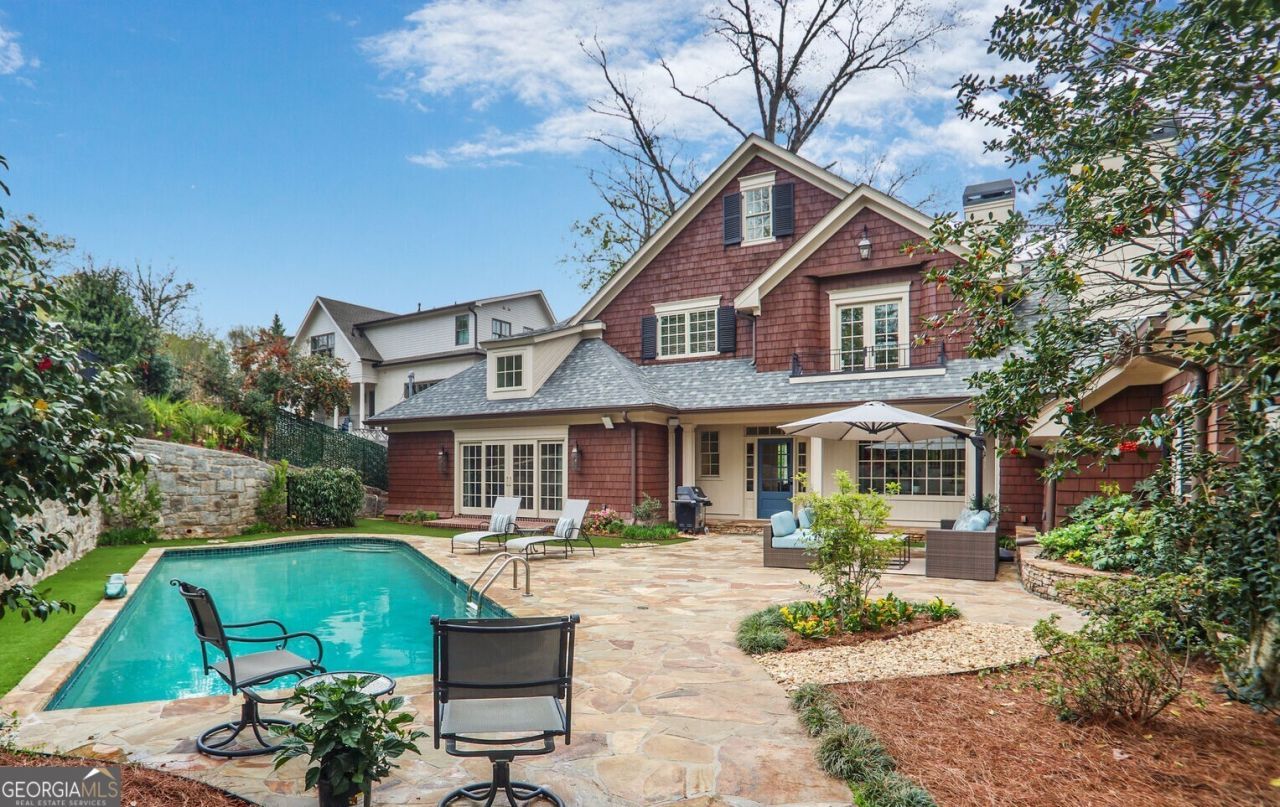 $100K Price Reduction! Amazing Ansley Golf Club Views from this New England Style Classic... with Heated Pool! Expert 2023 renovations from top to bottom in this 1997 rebuilt home. Watch the holiday fireworks from your gardens at the top of the grandest front lawn in Sherwood Forest. Dramatic front entrance with lighted stone walkway. Convenient rear entrance with 2-car garage and unique cul-de-sac street parking. Chef's Kitchen with Island, Fireplace and New Wolf Double Range. Family Rm with Screened Porch with Porch Swing. New Scullery/Pantry with 2nd Refrig and 2nd Dishwasher. Huge Formal Dining Rm with Custom Fireplace. Convenient Casual Breakfast Rm that embraces the Saltwater Pool and Stone Sundeck. Two Bedrooms on Main with luxury Full Bath and Half Bath. Generous Primary on the second level with oversized closet and 2nd Laundry. Additional 2nd Floor Family Room with custom Fireplace and Game Rm overlooking Pool. Third floor Bedroom with Flex Space and Full Renovated Bath. Large 6th Bedroom or office on lower level with Oversized Laundry Rm. Tremendous basement storage with exterior access. New Pella Windows. New Roof. New Paint. 4 Zones HVAC. Outdoor Pool Shower. Oversized 2-car Garage with its own HVAC. TWO Family Rooms. This one has it all!