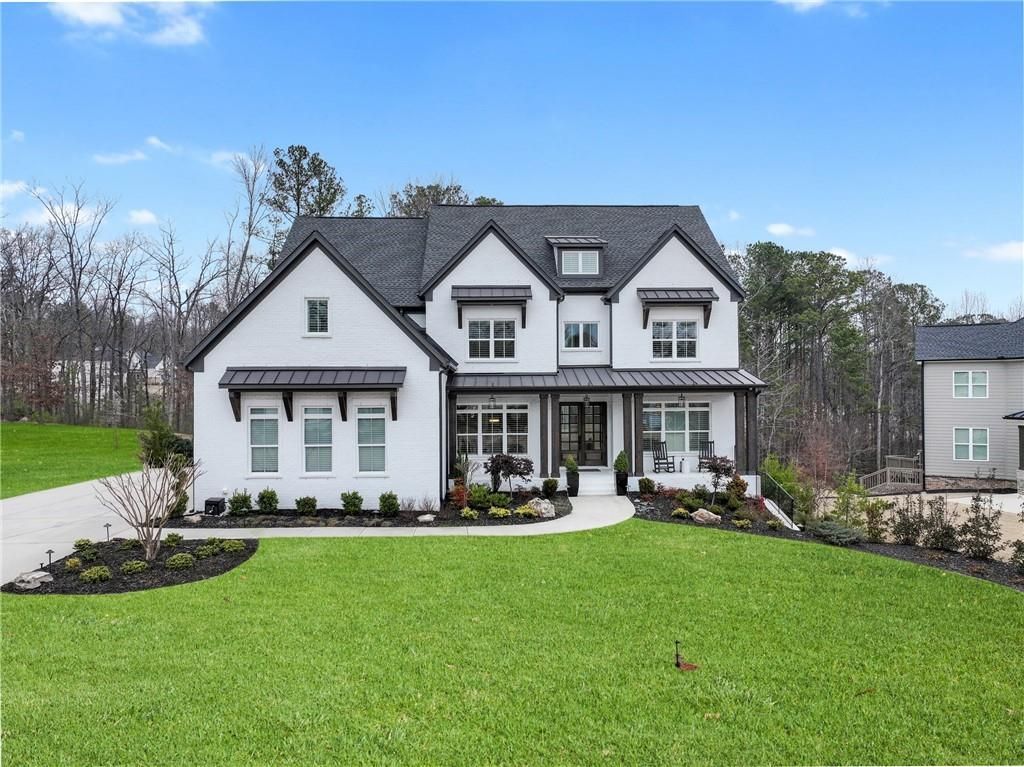 Step into refined elegance and everyday comfort in this extraordinary 6 bedroom, 5.5 bathroom estate offering over 6,100 square feet of beautifully designed living space on a private .61 acre lot. From the moment you arrive, the expansive front yard and covered front porch with wood accented columns set the tone for what's inside. A dramatic two story grand entrance welcomes you into a home that perfectly balances sophistication and warmth.Designed for both entertaining and everyday living, the large custom faux painted dining room with trey ceiling flows seamlessly into a butler's pantry complete with built in wine fridge and bar storage. The impressive two story family room showcases a Urban bronze brick accented fireplace with lighted built-ins and breathtaking floor to ceiling windows overlooking your private backyard oasis. The main level also features a full bedroom with ensuite bath, along with a stunning study or lounge space behind modern glass French doors.At the heart of the home is an expansive chef's kitchen with custom cabinetry, undercabinet lighting, oversized quartz island with storage and bar seating, top-of-the-line Wolf & Thermador appliances, gas cooktop with pot filler, upgraded inset refrigerator, walk in pantry, and a cozy keeping room with fireplace. A convenient friends' entrance and mudroom add everyday functionality.Upstairs, the oversized owner's suite offers a private sitting room with fireplace and a spa inspired bath featuring a frameless glass shower, soaking tub, and custom walk in closet system. Three additional bedrooms each have access to full baths, including a Jack and Jill layout. An oversized laundry room with sink, cabinetry, and folding counter provides ample space for organization.The fully finished terrace level is truly one of a kind. Designed as the ultimate entertainer's retreat, it features a custom built designer bar with full slab marble backsplash, custom wood paneled ceiling, statement lighting, dual beverage centers, wine tasting room with wet bar, and a show-stopping wine cellar display with glass surrounds. Enjoy a dedicated movie room, expansive recreation room, separate card room with wet bar, and even a hidden humidor room for a distinctive touch. The theater space includes five TVs displaying multiple games simultaneously, complete with a live game ticker?.an unforgettable sports lover's dream. This basement is what your friends will always talk about. Outdoors, the resort-style backyard redefines luxury living. With almost $300,000 in upgrades, you can relax in the 16x24 heated saltwater pebbletec pool with raised hot spa, sheer descent waterfall with fire feature, and elegant travertine decking surrounded by articulated artificial turf. Practice your short game on the three-hole putting green, host gatherings at the iconic tiki bar with fridge and TV, or grill on the dedicated outdoor cooking porch. Every detail has been thoughtfully designed for year round enjoyment and the most perfect set up just off the terrace level bar. Located in a community offering lighted tennis courts, swimming pool, and playground just down the road, this exceptional residence delivers the perfect blend of luxury, comfort, and lifestyle. Just minutes to Atlanta National Golf Club, the area is surrounded by Equestrian stables and estates, Minutes to the wonderful and trendy Union Hill Grill, just down the road from Hickory Flat, Birmingham Park Hiking Trails and Seqouyah Park wi