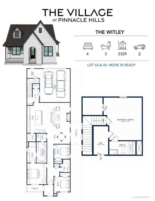 The Witley Cottage Home is the largest floor plan in The Village at Pinnacle Hills, offering 4 bedrooms and 3 baths across 2,329 square feet. This thoughtfully designed home features a welcoming front porch and a flexible layout with a private bedroom and en suite upstairs, perfect for guests or a quiet retreat. Spacious living areas and high-end finishes throughout make this home ideal for both everyday living and entertaining. Located in The Village at Pinnacle Hills, residents enjoy low-maintenance living with lawn care included, walking trails, pickleball courts, and community green spaces, all just minutes from Pinnacle Hills dining, shopping, and entertainment.