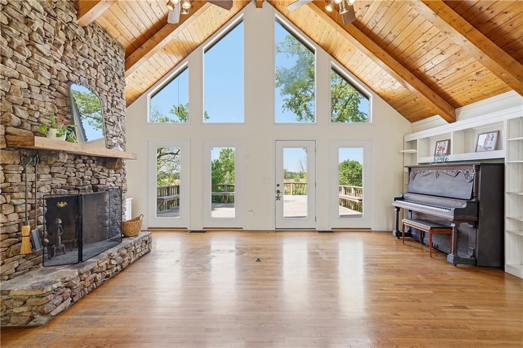 Tucked away in a peaceful, private setting along the Coossawattee River, this riverfront retreat offers the perfect blend of rustic character and serene natural beauty. Set on an acre of usable land, the property invites you to relax and unwind while taking in tranquil river views from the expansive back deck that spans the width of the home; or take advantage of the secondary drive with direct river access, offering the potential for easy kayak or small boat launch with a little clearing.Inside, the open-concept layout is anchored by a stunning great room featuring vaulted tongue-and-groove wood-beam ceilings, a floor-to-ceiling wood-burning stone fireplace, and custom built-ins on both sides. The spacious kitchen offers an oversized island, granite countertops, dining area, and flows seamlessly into the main living area-ideal for gathering and entertaining.French doors from the great room, primary suite, and secondary bedroom provide direct access to the back deck, creating a true indoor-outdoor living experience. The primary suite features dual closets with built-ins, a double vanity, and a distinctive oversized walk-in shower.Additional features include a detached two-car garage with workshop space and a fenced dog run. With a little TLC, this home is an incredible opportunity to personalize a riverfront retreat in a quiet, country setting.