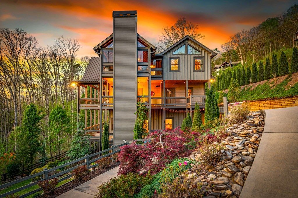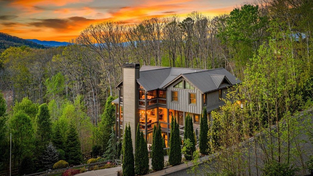 Welcome to luxury mountain living in the highly sought-after The Heights at Cashes Valley. Perfectly positioned to capture breathtaking views of the National Forest, this exceptional 4 bedroom, 3.5 bath home offers the ideal blend of upscale design, comfort, and outdoor living. Inside, you'll find soaring cathedral ceilings, a seamless mix of wood and sheetrock, and a stunning wall of glass that floods the home with natural light while showcasing the mountain views. The open living spaces are anchored by rich hardwood flooring, custom cabinetry, quartz countertops, and beautifully appointed tile showers throughout. The primary suite is a true retreat, featuring a striking tin cathedral ceiling and private access to a 3-season deck complete with a stone fireplace?perfect for year-round enjoyment. Designed for both relaxation and entertaining, the home offers five fireplaces, three covered decks, and spacious outdoor entertaining areas with fireplaces. The meticulously maintained grounds feature exceptional landscaping and a fenced yard, adding both beauty and functionality. This is refined mountain luxury at its finest?offering privacy, views, and thoughtful craftsmanship in one of the area's premier communities.