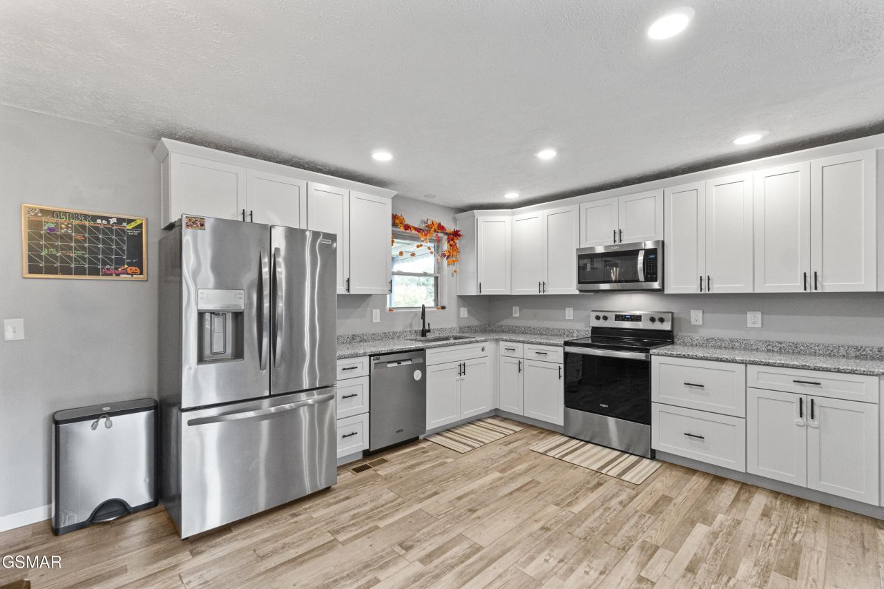 Welcome to this stunning 4-bedroom, 2.5-bath home offering over 2,300 sq. ft. of updated living space and a modern, functional layout perfect for today's lifestyle. Step inside to an inviting open-concept main level featuring a stylish kitchen with stainless steel appliances, slow-close cabinetry, garbage disposal, and vinyl plank flooring throughout. The spacious dining and living area is ideal for family gatherings or entertaining guests. The primary suite includes a walk-in tile shower and tasteful finishes. Upstairs also offers two additional bedrooms, a full bath, and two convenient linen closets for added storage. Downstairs, you'll find an expansive living or entertainment area complete with a wet bar and refrigerator, half bath, laundry room, and a granite window bar - a perfect touch for hosting or relaxing. There's also a fourth bedroom that provides great flexibility for guests, an office, or an in-law setup. Step outside to enjoy the awning-covered back porch overlooking a level, fenced-in yard with apple trees - a peaceful space to unwind or entertain. Two storage buildings with electricity and an attached two-car carport add even more value and convenience. Recent updates include a new water heater (2024), HVAC (2010), and a whole-house water filtration system. With public water, public sewer, and central HVAC, this home is move-in ready and low maintenance. Located just minutes from the lake, shopping, dining, and all that Morristown has to offer, this beautifully remodeled property blends comfort, functionality, and East Tennessee charm in one exceptional package.