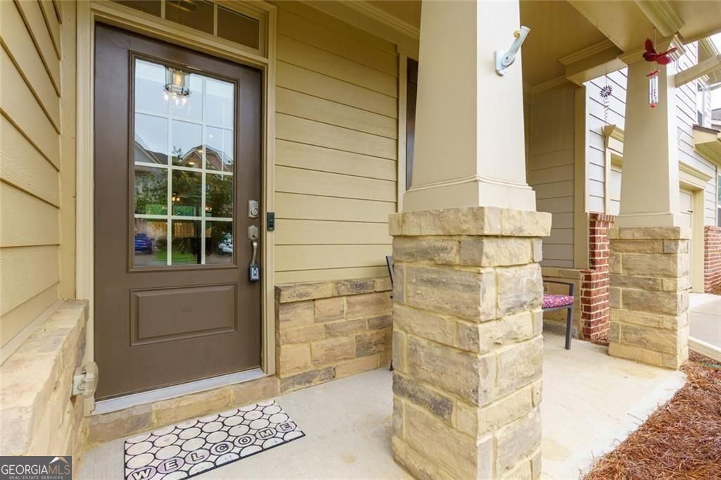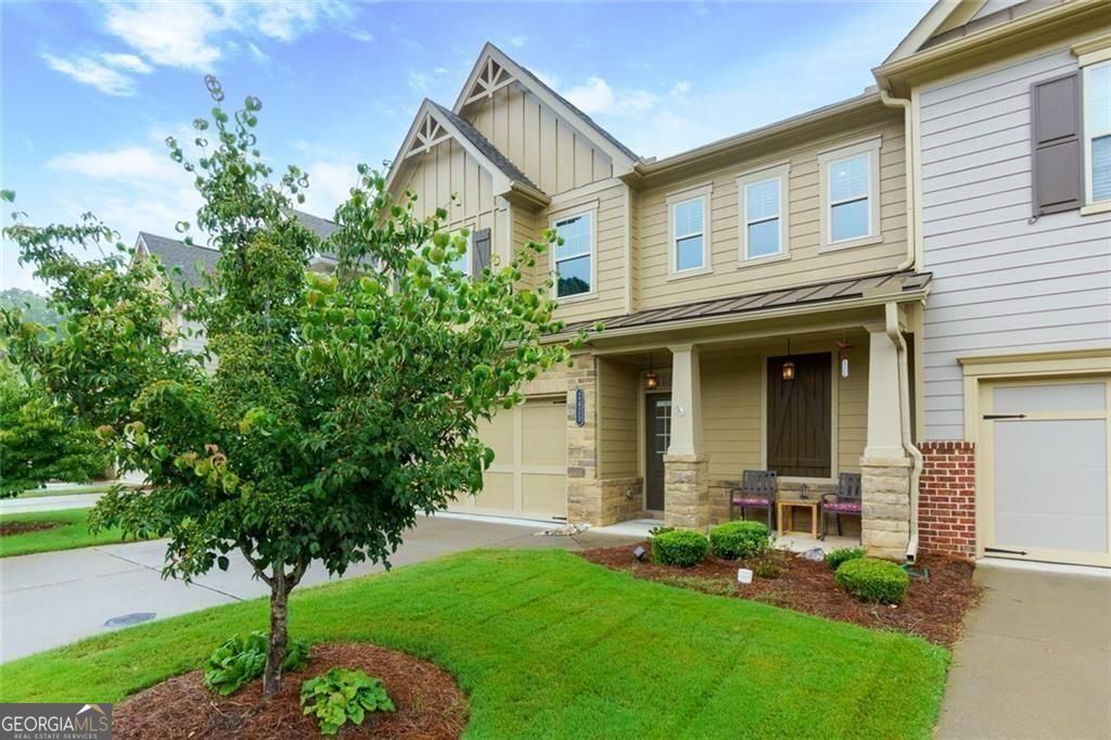 Discover your dream home in the highly sought-after Stablegate at Mountain Crest community! Designed for seamless living, this move-in-ready former model townhome offers an open-concept layout and the convenience of complete main-floor living. Flooded with natural light, the main level features high ceilings, architectural details, gleaming wood floors, and a contemporary style. The gourmet kitchen includes granite countertops, a sleek linear glass tile backsplash, a peninsula with counter-height seating, stainless steel appliances including a gas range, painted cabinetry, and a functional pantry. Retreat to the expansive owner's suite, where garden views, a chic tray ceiling, and a spa-inspired bathroom with a large tiled walk-in shower, double vanity, and custom-designed walk-in closet create a serene escape.The great room, with its cozy gas fireplace, built-in shelving and cabinetry, and open dining area, is perfect for hosting or unwinding. Throughout the home, upgraded lighting, a fresh contemporary paint scheme, and wider accessible doorways seamlessly blend style with everyday practicality. The main level also thoughtfully includes a convenient half-bath, a dedicated laundry room, and an expanded storage alcove tucked beneath the stairs. Upstairs, a versatile loft space provides an ideal spot for relaxation, while two additional bedrooms with walk-in closets and a full bath offer ample comfort for family or guests. A dedicated home office with elegant French doors provides the perfect environment for productivity. The two-car garage boasts durable epoxy flooring and built in shelving. Step outside to your expanded private patio, surrounded by lush lawn and a privacy fence, creating an idyllic setting for outdoor living and entertaining. CAT 5 wiring ensures seamless connectivity throughout the home. This beautiful townhome, a testament to pride of ownership, is nestled within a master-planned community with well-maintained grounds. Prepare to be spoiled by resort-style amenities, including clubhouses, pools, tennis and pickle ball courts, fitness center, parks, playgrounds, scenic trails, and even a community garden in Stablegate. The HOA fee covers all your worries, from lawn and landscape maintenance to exterior care, roof maintenance, and garbage pickup. For your ultimate convenience, all appliances (except the refrigerator), window blinds, and garage shelving are included. Location is paramount! This spacious townhome is just minutes from the vibrant heart of downtown Cumming, highly-rated Forsyth County schools, diverse shopping destinations, and major highways ensuring an effortless commute. This exceptional home truly offers the perfect fusion of luxury, convenience, and a thriving community.