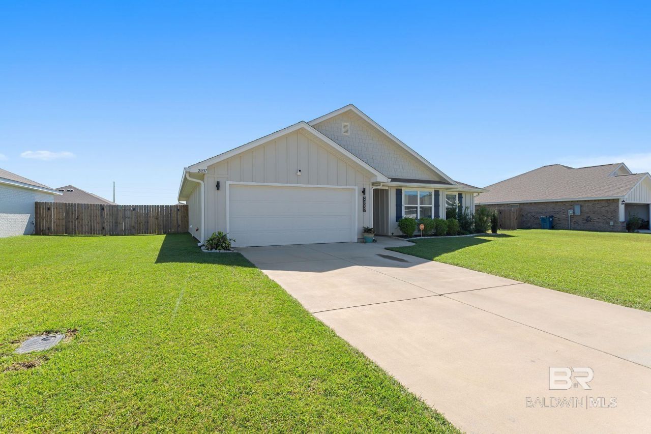 NOW OFFERING THE OPTION TO PURCHASE FULLY FURNISHED Contact agent for details. Gold Fortified Home in Elberta with smart home technology, upgraded finishes, and a functional open layout just minutes to Foley and a short drive to Gulf Shores beaches.The popular Booth floorplan offers a bright, open living space filled with natural light and designed for both everyday living and entertaining. The kitchen is a true centerpiece featuring a large island with built-in sink, upgraded backsplash, under-cabinet lighting, modern fixtures, and abundant cabinet and prep space.The private primary suite provides a relaxing retreat with double vanities, soaking tub, separate shower, and a spacious walk-in closet. Additional bedrooms offer flexibility for guests, family, or a home office.Smart home features allow you to control the door lock, lighting, and thermostat from your phone, while the epoxy-coated garage floor adds durability and clean storage space. Built to Gold Fortified standards for potential insurance savings and added peace of mind.Move-in ready with the option to be sold furnished, this home offers comfort, convenience, and modern features in a growing Elberta location. Homes with these upgrades and smart features are in high demand schedule your showing today. Buyer to verify all information during due diligence.