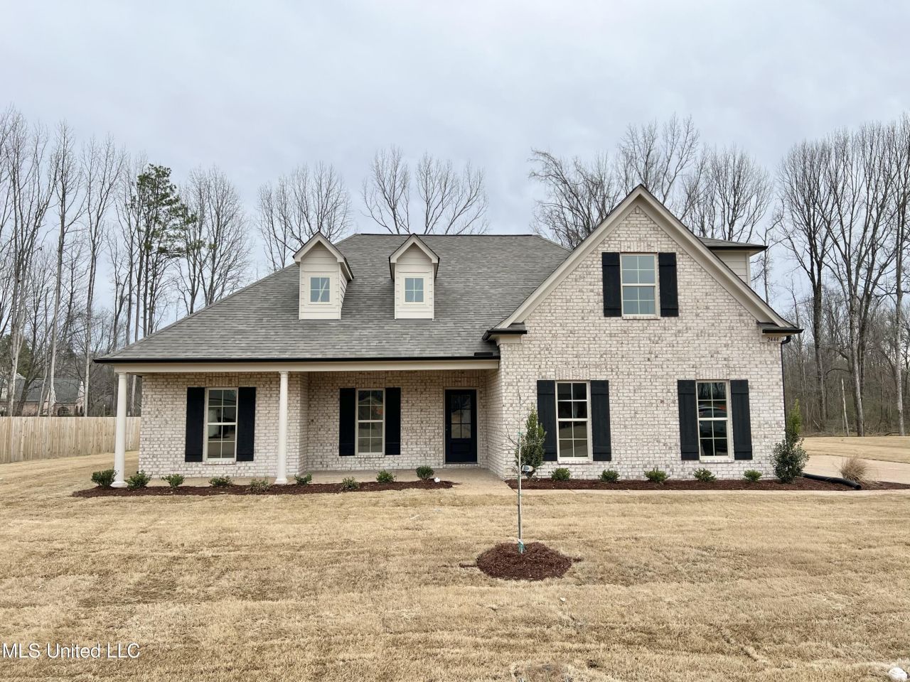Seller is offering 3% concession towards closing costs or rate buy down with a preferred lender. Our Kinsley B plan is situated on a large .55 acre lot with an additional .31 acre (wooded) lot included, offering a beautiful view of the trees from your backyard. This beautiful home offers an open concept floor plan with the kitchen and dining area looking into the family room. Walking into the home you will see LVP flooring throughout the foyer, family room, kitchen, dining room, hallways and primary bedroom. The kitchen has stainless steel appliances, quartz counter tops, tile backsplash, pantry with wood shelves, and a large island, perfect for bar stools. The master bedroom is on one side of the home and features a large master bath with stand-alone tub, walk in shower. Share a vanity with two sinks but you don't have to share your walk-in closet, there is one for each of you. On the other side of the downstairs, you will find two additional bedrooms and a bathroom. Upstairs you will find a large recreational room with a closet that can serve as a fourth bedroom and another full bath. Outside features a large covered patio, covered front porch, sodded yard, beautiful landscaping, and 2 car garage. Scott Meadows is just 2 miles west of the Hernando Square and located in the award winning Hernando School District. Estimated completion is January 2026. Hurry, while selections can still be made.**Disclaimer Pictures/Video is of a previously finished Home, may not be actual representations of standard features in homes but some may show upgrades.
